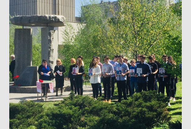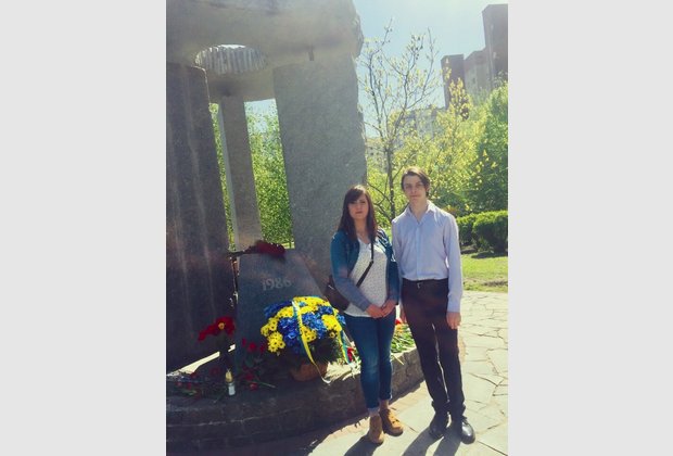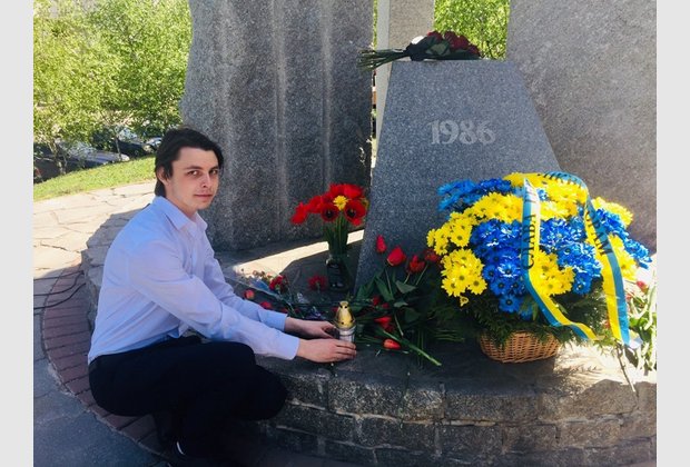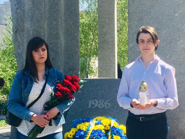Representatives of the IAPM students Radmila Cherednichenko and Volodymyr Kozoriz participated in the meeting-requiem, which was held in the Holosiivskyi district on the occasion of the thirty third anniversary of the Chernobyl nuclear disaster, and put flowers on the monument to the liquidators-Chernobyl victims.