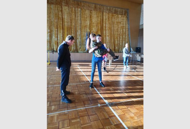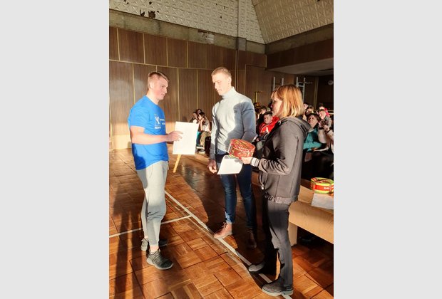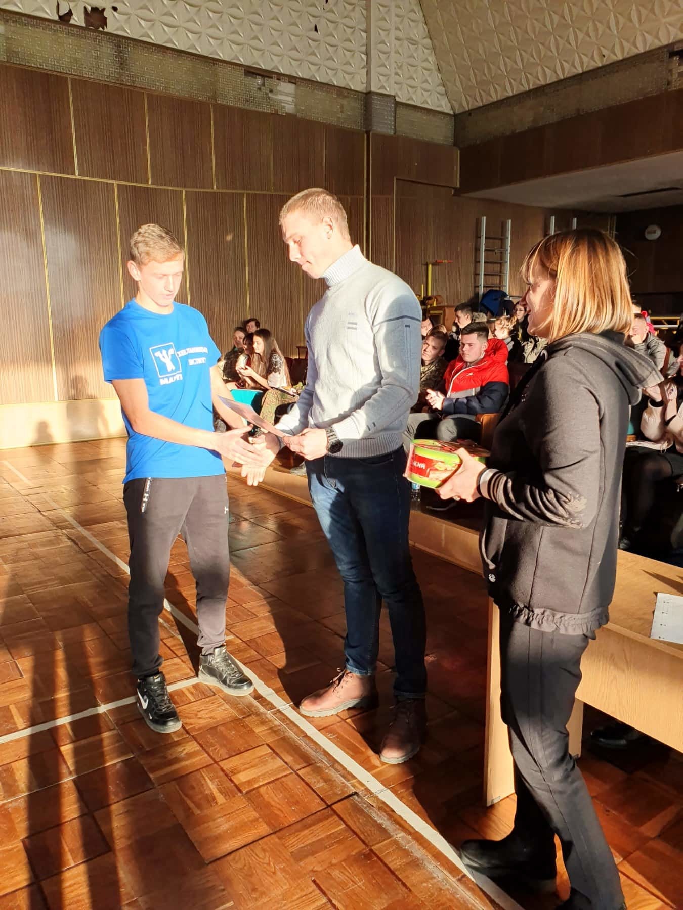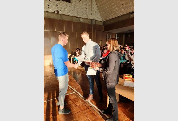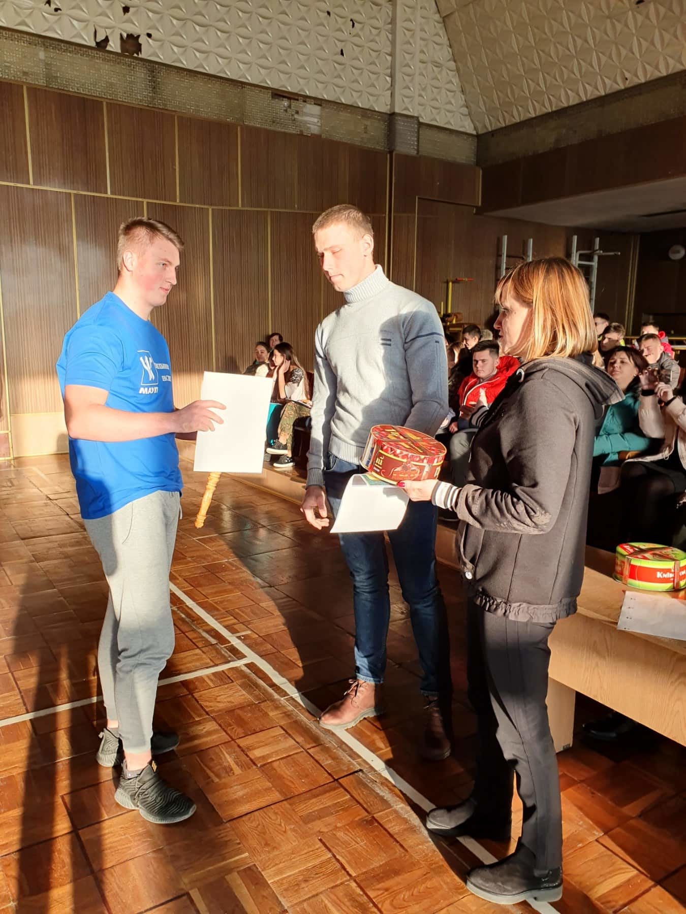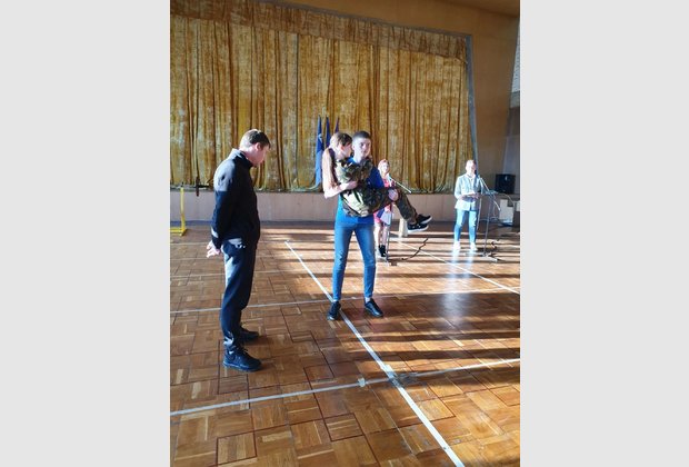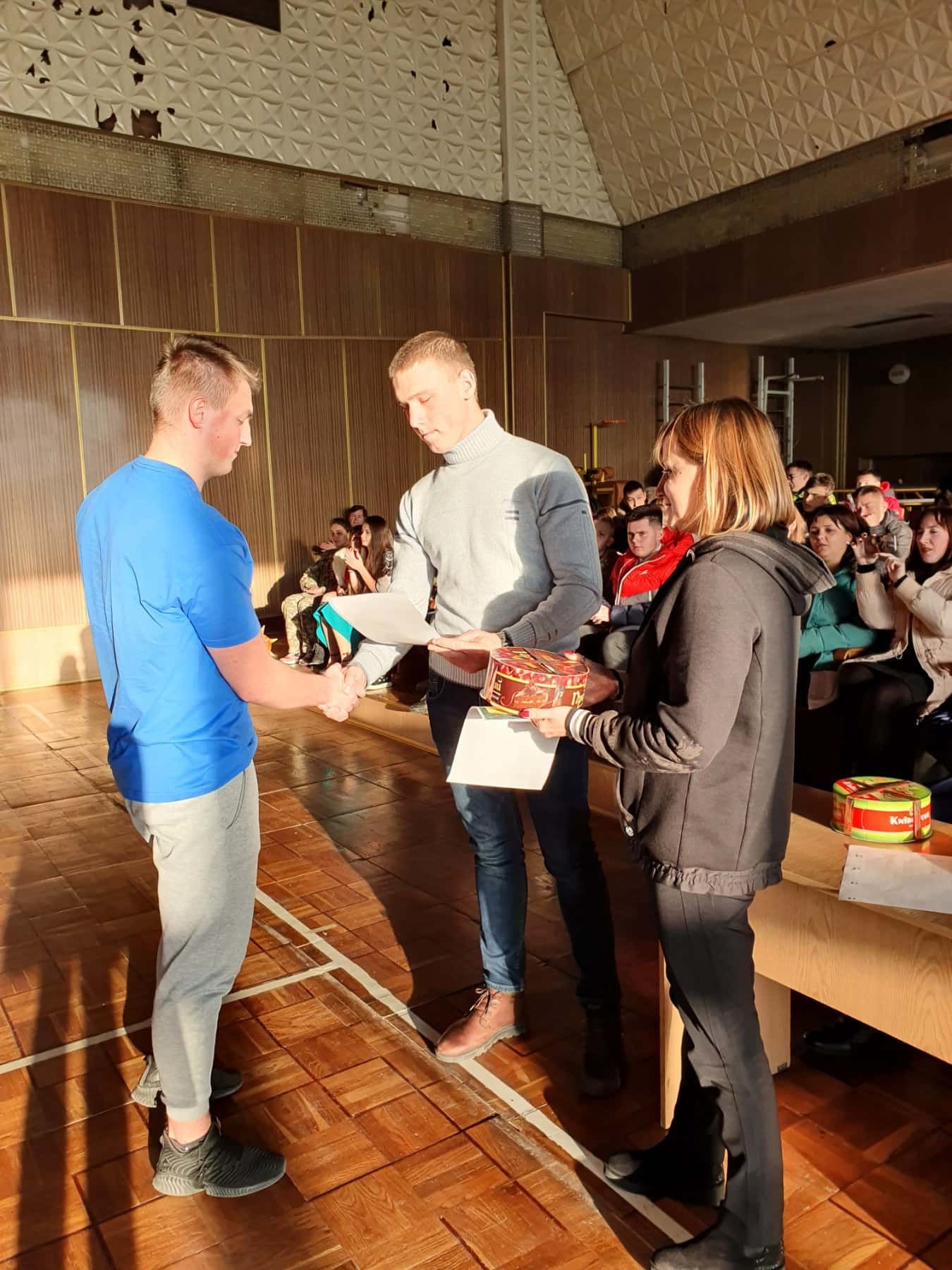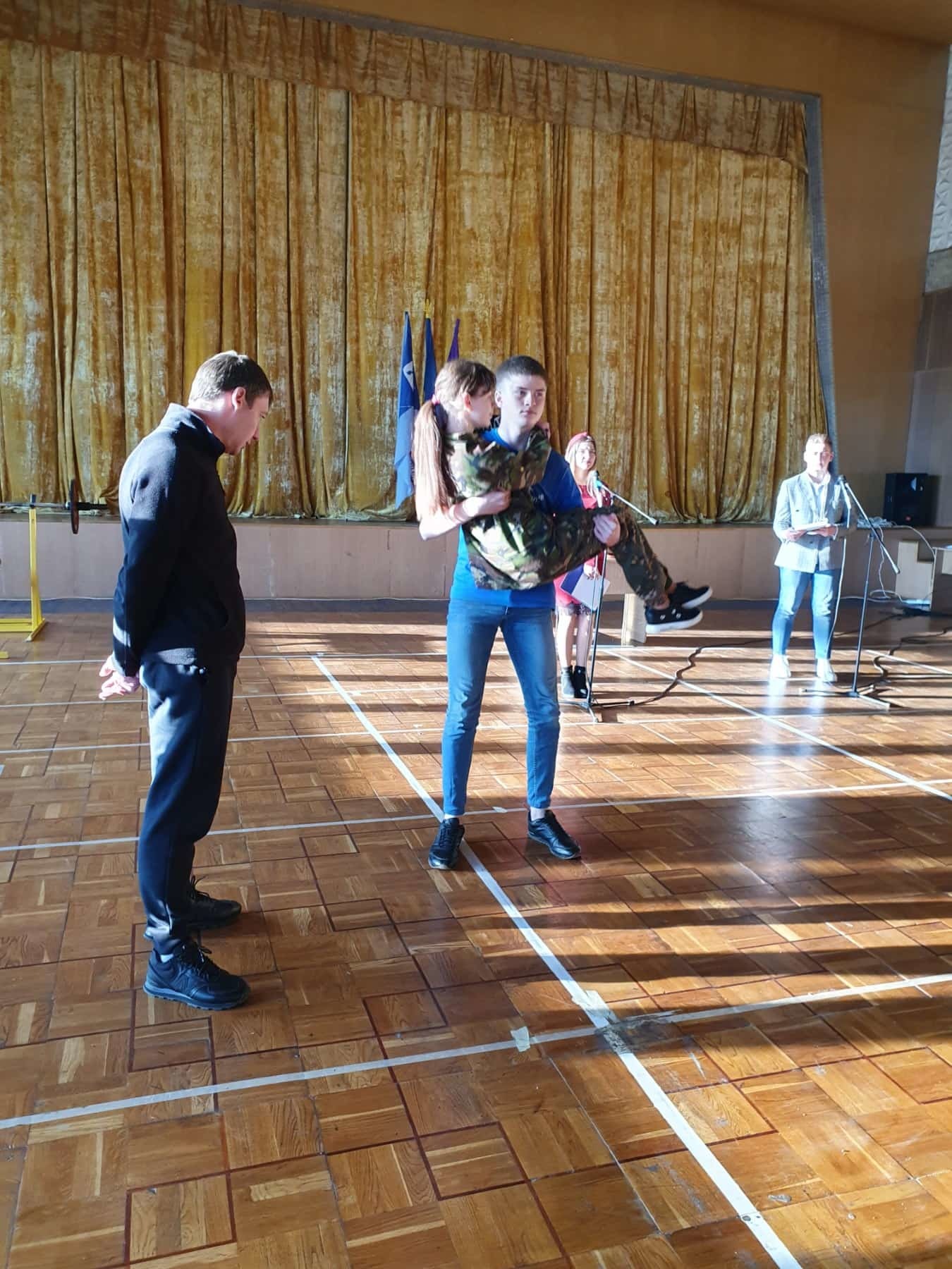 Director of the Khmelnitsky Economics and Law College of IAPM V. Parandiy and fighter of the 8th separate special forces regiment V. Wojtyuk handed the teams letters and sweet gifts.