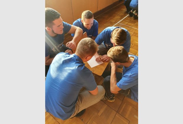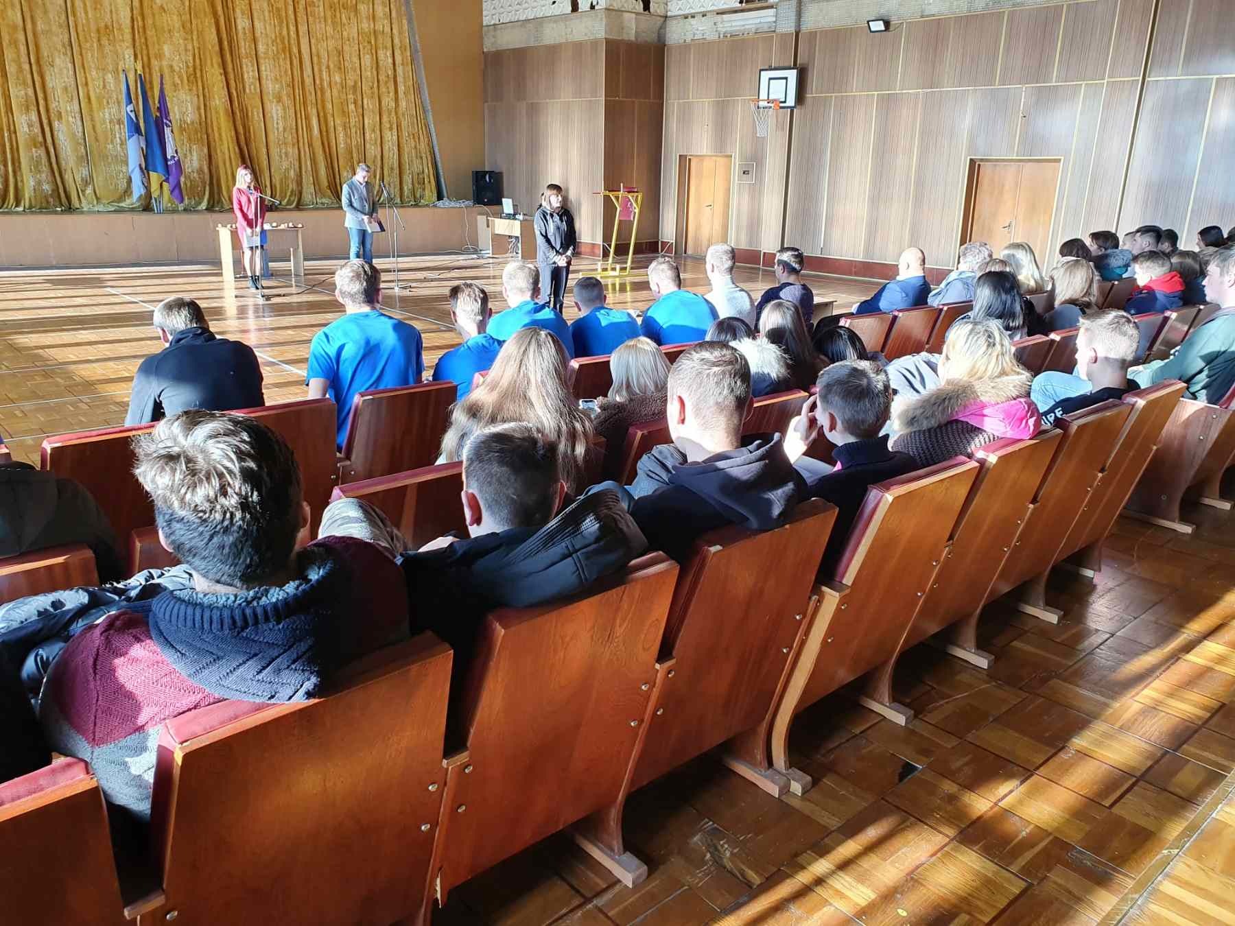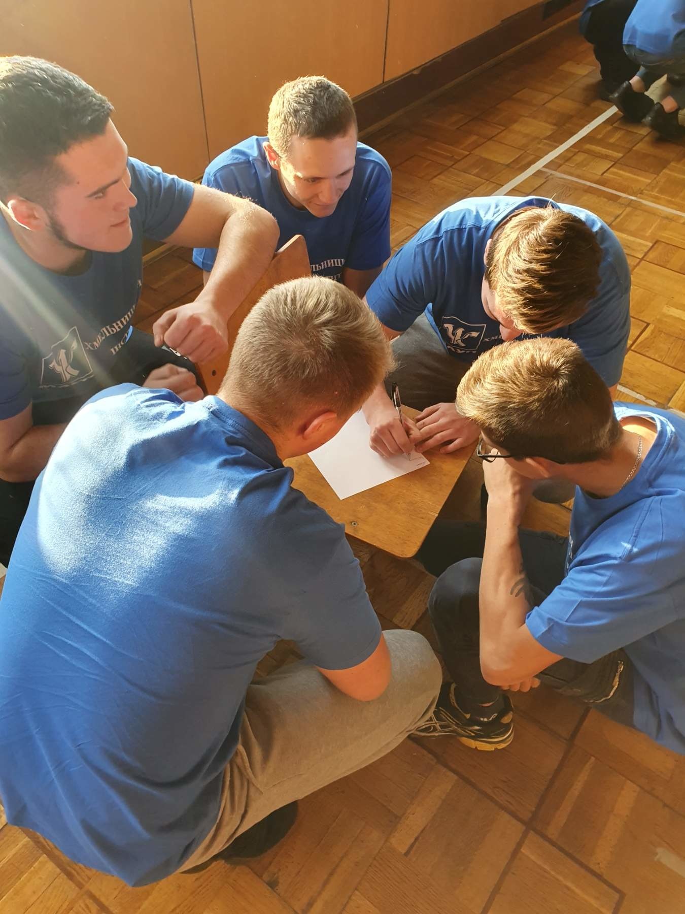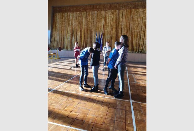 Two teams competed - “Saber” and “Mace”. Students actively participated in various types of tasks. Between the competitions there were creative pauses - scenes, songs and the like.