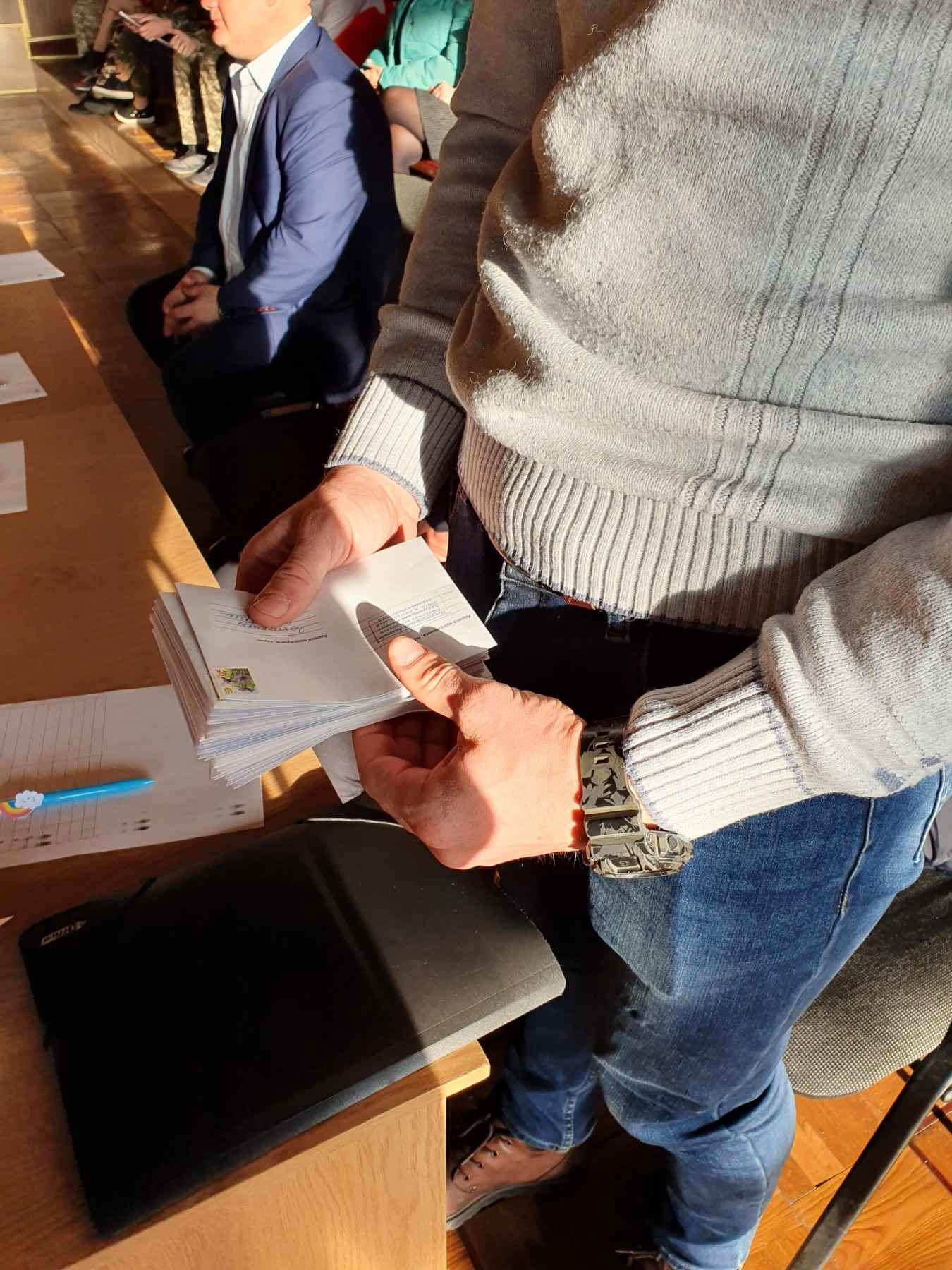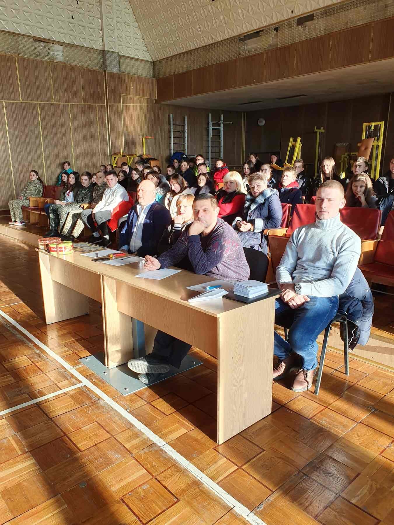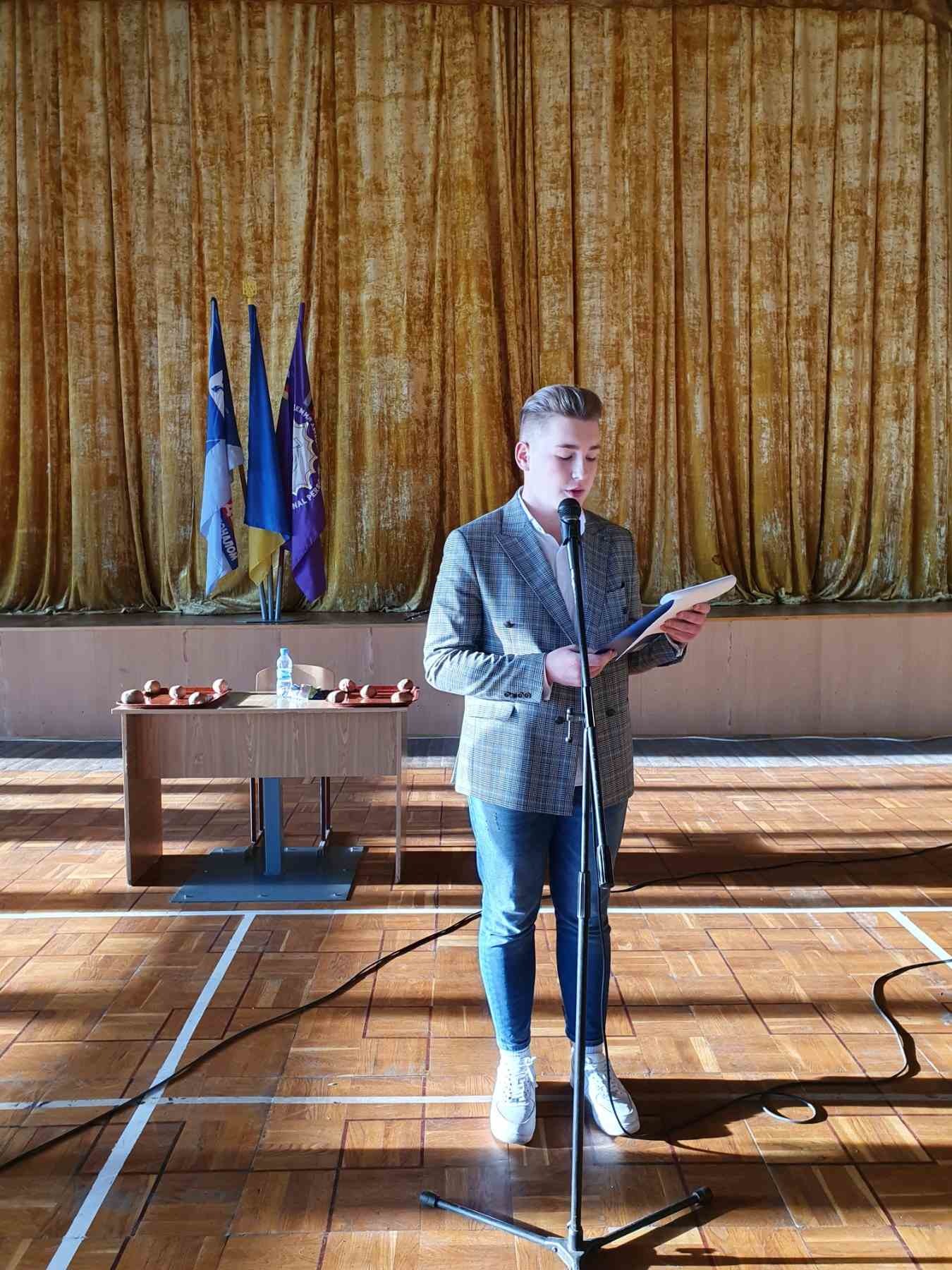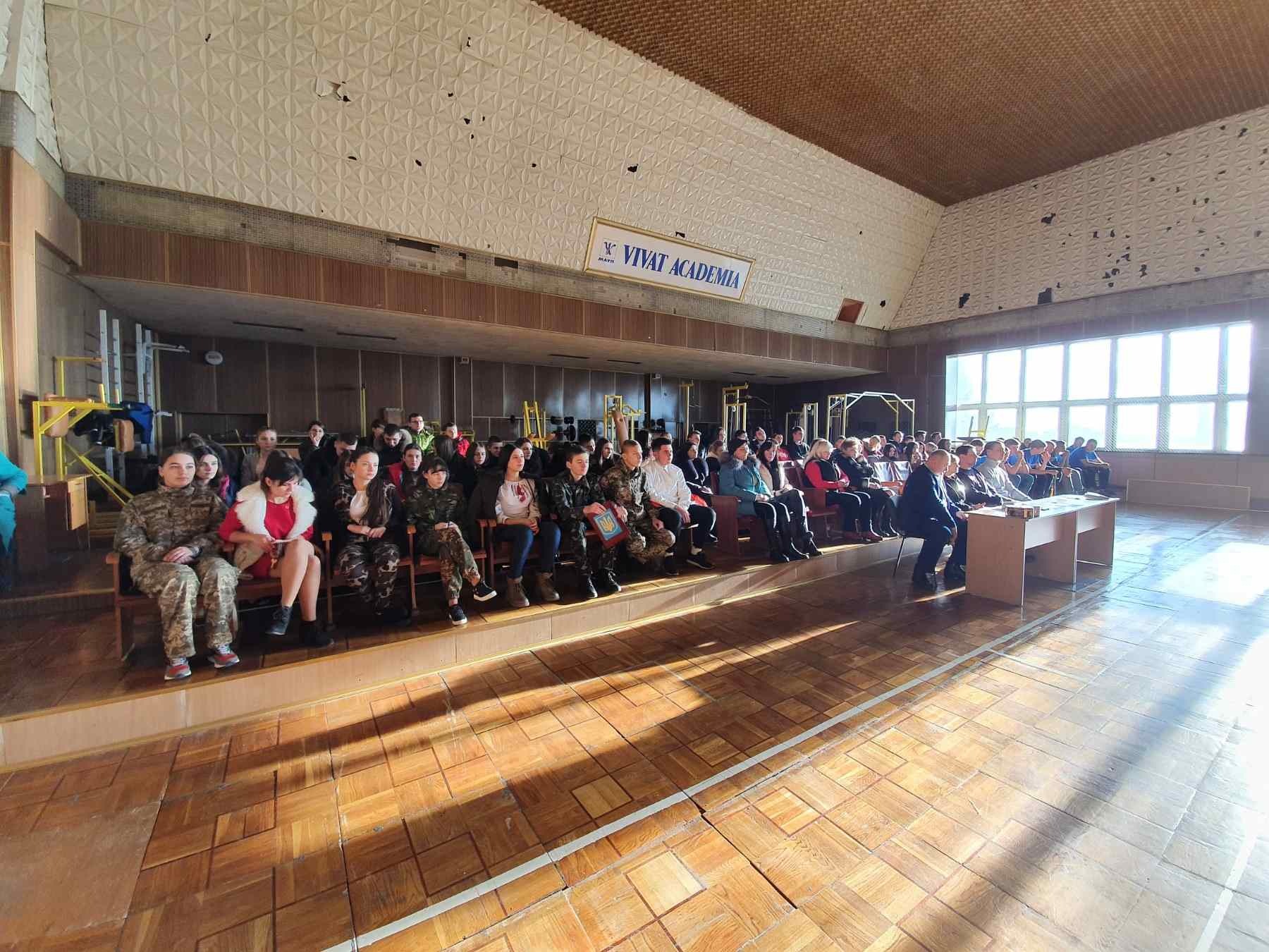 The director of the Khmelnitsky Economics and Law College of IAPM V. Parandiy. She congratulated all the male representatives on the holiday and handed V. Wojtyuk, a participant in the Operation of the Joint Forces (OOS), a fighter of the 8th separate special forces regiment, wrote letters to soldiers written by students of the Khmelnitsky Economics and Law College and the IAPM Institute.