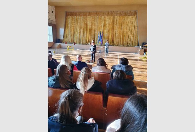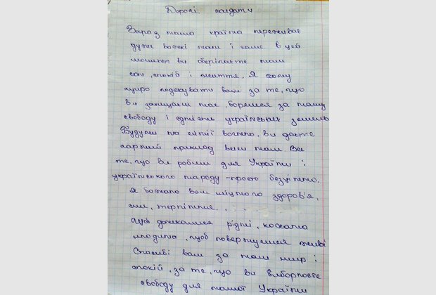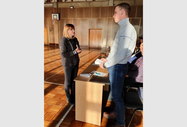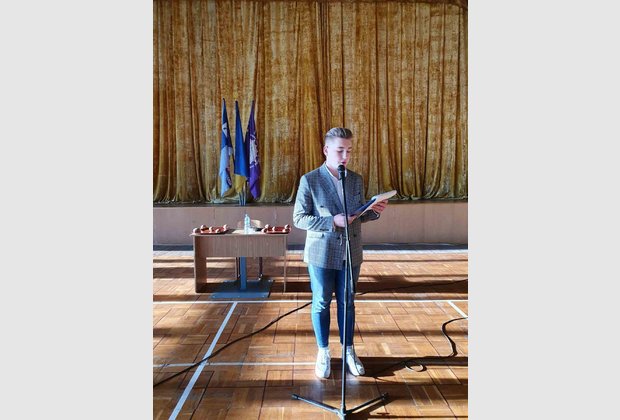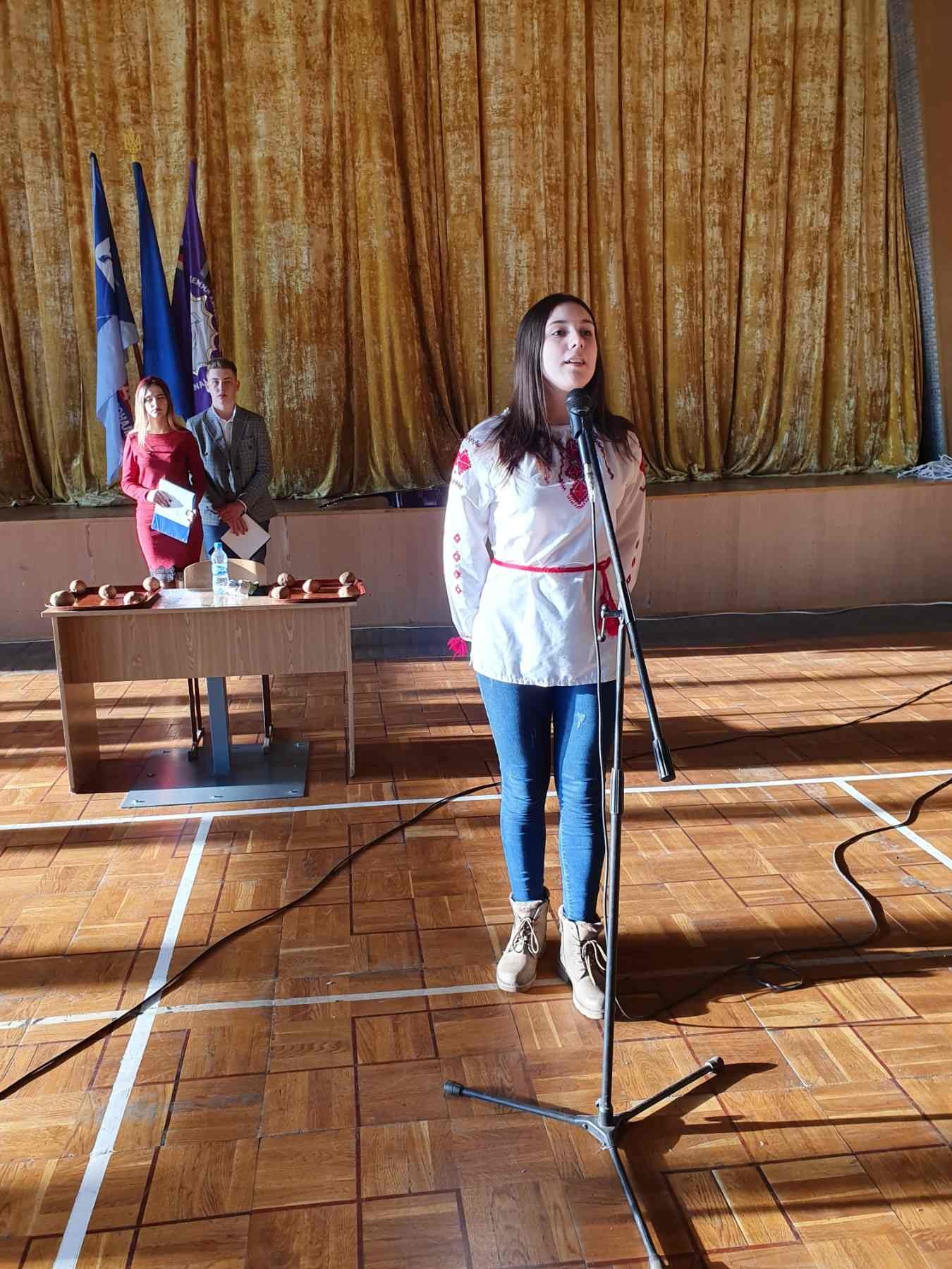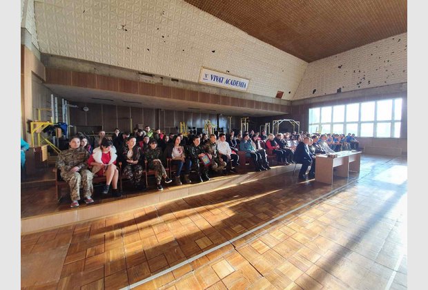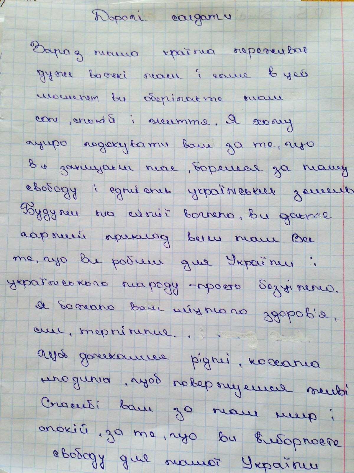 The director of the Khmelnitsky Economics and Law College of IAPM V. Parandiy. She congratulated all the male representatives on the holiday and handed V. Wojtyuk, a participant in the Operation of the Joint Forces (OOS), a fighter of the 8th separate special forces regiment, wrote letters to soldiers written by students of the Khmelnitsky Economics and Law College and the IAPM Institute.