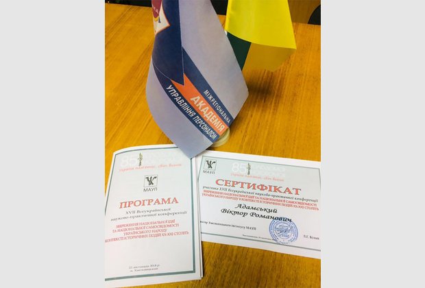 On November 22, 2018, the XVII All-Ukrainian Scientific and Practical Conference "Preservation of the National Idea and National Identity of the Ukrainian People in the Context of Historical Events of the Twentieth and Twentieth Centuries" was held at the IAPM Khmelnytsky Institute (to the 100th anniversary of the end of the First World War (1914-1918), the 85th anniversary of the Holodomor (1932-1933), the 80th anniversary of the Great Terror, mass repressions (1937-1938).