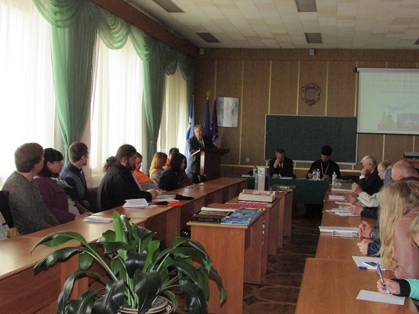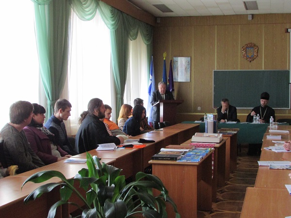 Conference began with the opening words of the director of the Institute IAPM Khmelnytsky, Leonid Beliy. L. G. Beliy in his speech said that the cooperation of the Church and higher education to create constructive dialogue on the case of the pastoral care of young people, as well as establishing partnerships with persons engaged in education, science and culture, and community organizations. The conference was continued by Datsyuk Alexander Anatolyevich, archpriest, secretary of the Khmelnytsky eparchy of the UOC, head of the department of Ukrainian Orthodoxy and theology of the Khmelnytsky Institute of the IAPM. Protopriest Alexander Datsyuk read out the address of His Eminence Anthony, Metropolitan of Khmelnytsky and Starokonstantinovsky to all participants of the conference and a blessing for fruitful work.