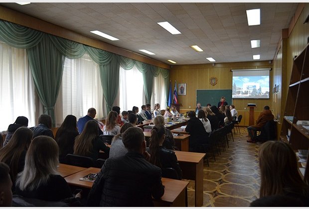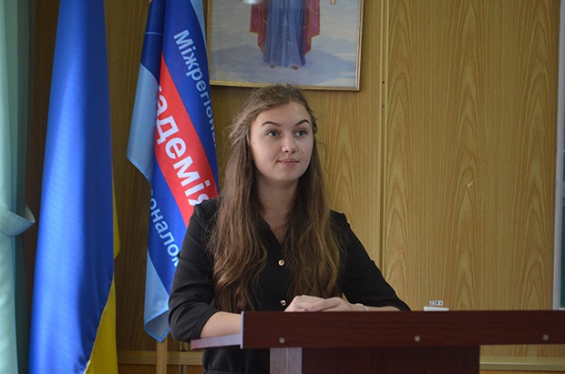 A scientific meeting began with a welcome speech by the Director of Khmelnitsky Economic and Law College of IAUP Valentina Parandi, which raised urgent problems: language as a constituent of state formation, the linguistic environment of the student and student language.