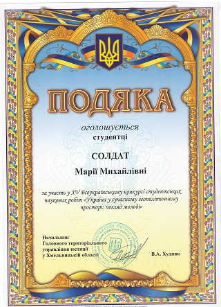 For the 15th year in a row at the Khmelnytsky Institute of MAUP in order to intensify the research work of students of higher educational institutions and students of general education schools, lyceums, gymnasiums, the All-Ukrainian contest of student and student science works "Ukraine in the Contemporary Geopolitical Space: The View of Youth" is held. The competition began on October 14, 2017 and ended on April 14, 2018.