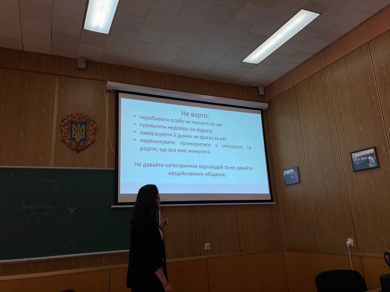 On January 31, 2024, a scientific and practical seminar with training elements entitled “War-related sexual violence: principles and support services” was held as part of the project "Standing Together. Improving the Support System for Victims of Conflict-Related Sexual Violence/CRSV" for full-time psychology students.