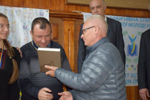 Myron Ilnytskyy greeted the coach, Nikolai Bondar, of the winners from Vinnytsia region, presented him a book "Pandoras reverberation-mourning" by Mykola Shudrya and Vasyl Nechepa.