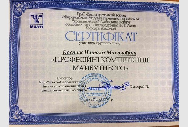 - "Competences of the past" by candidate of psychological sciences, professor Tkachenko V.A.