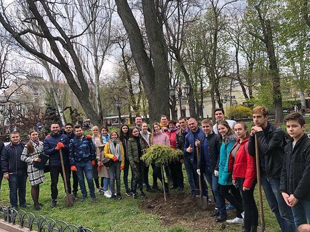 Within the Saturday school, attended by a student of the Odessa Institute Arseniy Gavrilyuk, with the participation of specialists of the Communal Enterprise "City zelenotrest" 7 trees were planted in the City Garden: 2 juniper trees, 1 cypress and 4 cedar trees.