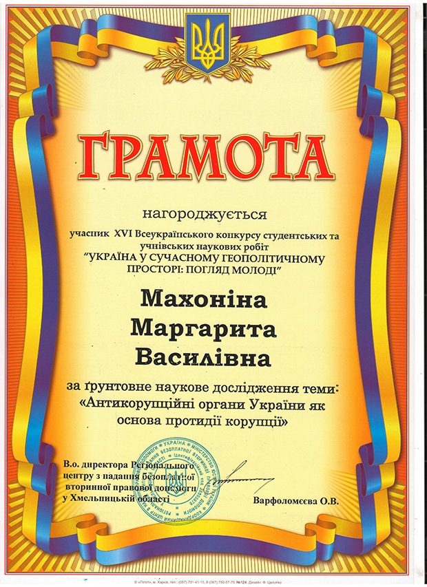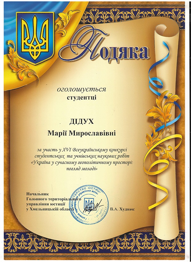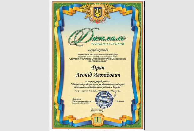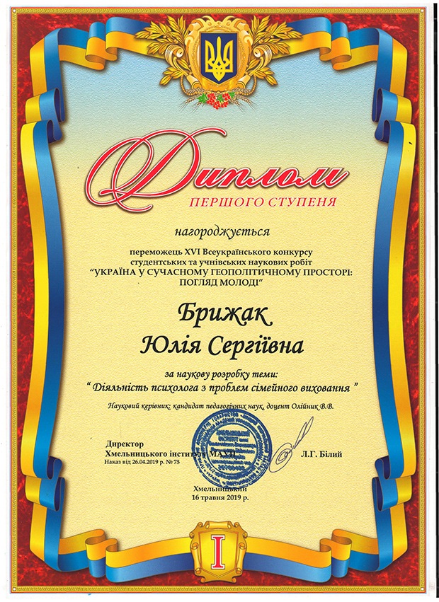 A conference started with the greetings of Khmelnytsky Institute's director L. G. Bily. In his speech, L. G. Bily noted the role of science in the life of the individual and called everyone to productive work during the event. Then there was a presentation of diplomas for the best scientific work for students, as well as thanks to their scientific executives. Each of the representatives handed pupils and students awards.