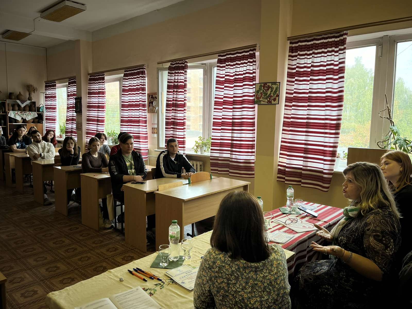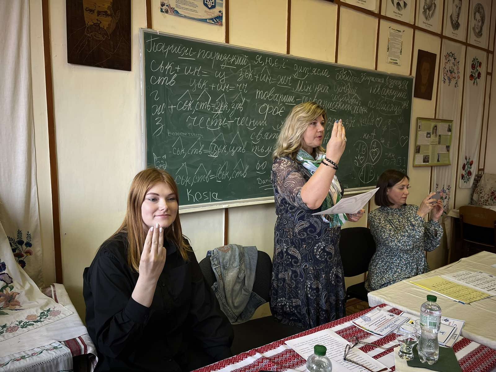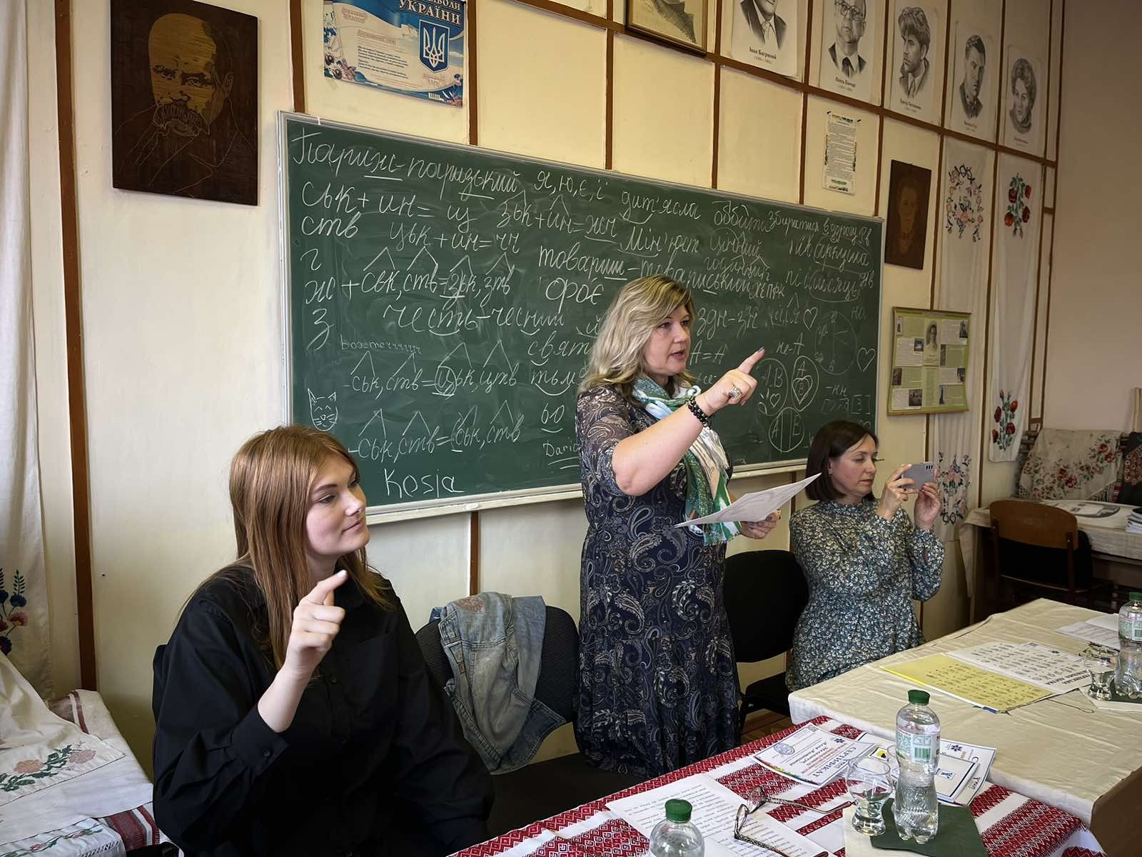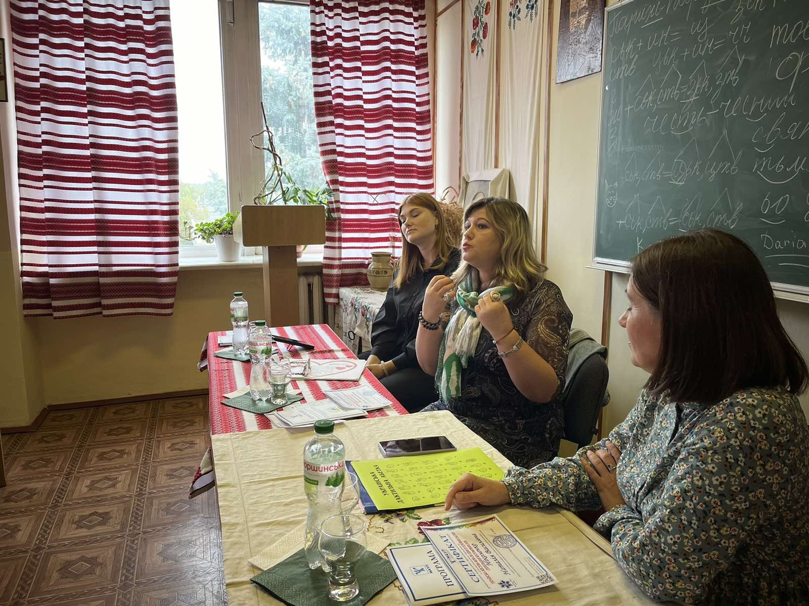 The speakers were: Natalia Nikolenko, Chair of the Khmelnytsky Regional Organization of the Ukrainian Society of the Deaf; Alla Melnychuk, psychologist at Khmelnytsky Special General Education School No. 33; Maria Yaremchuk, lecturer at the Department of Psychology of the Khmelnytsky Institute of the Interregional Academy of Personnel Management; beneficiary of the Khmelnytsky Regional Organization of the Ukrainian Society of the Deaf. They shared their many years of experience working with sign language users, spoke in detail about the importance of sign language in the daily lives of people with hearing impairments, and demonstrated basic communication techniques.