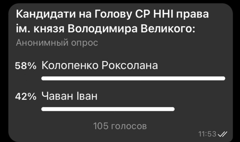 Roksolana Kolopenko - Head of the Student Council of the Educational and Scientific Institute of Law named after Prince Volodymyr the Great;