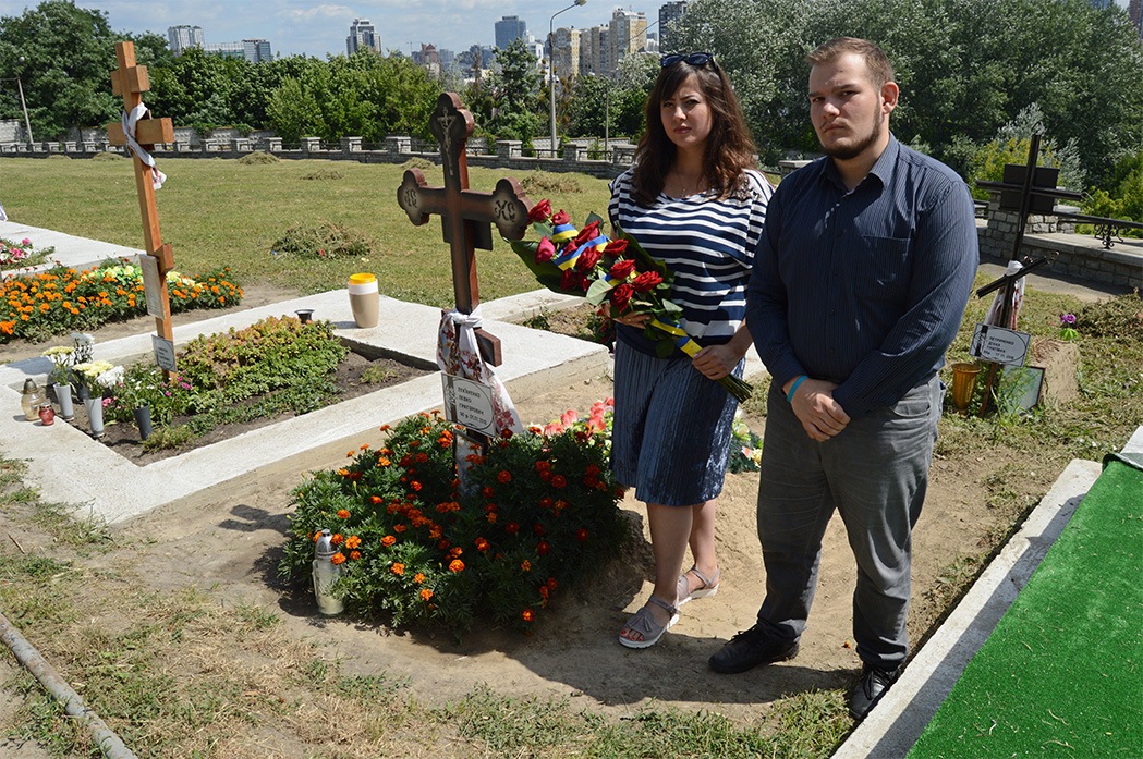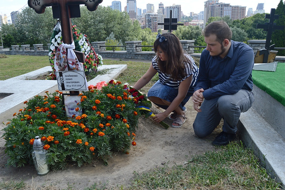 On July 5, 2019, on the eve of the anniversary of the death of a political and public figure, a co-founder of the Ukrainian Helsinki Group, a writer, a dissident, a fighter for independence of Ukraine Levko Lukyanenko, students of the academy Radmila Cherednichenko and Sergiy Ikonnikov honored the memory of the Hero of Ukraine by laying flowers to his grave at Baykovy cemetery.