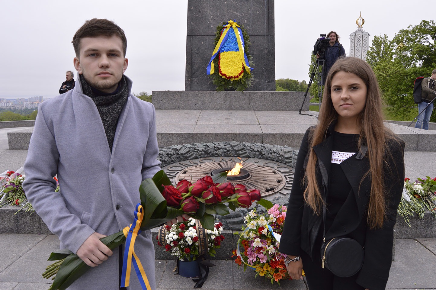 Representatives of IAPM: students Maria Dovgan and Oleksiy Girko, as well as the head of the extracurricular activities Valentina Slisarenko on behalf of the leadership, teachers, staff and students of the University, commemorating the memory of the fallen warriors of the Second World War, laid flowers to the Memorial of Eternal Glory on the grave of Unknown Soldier.