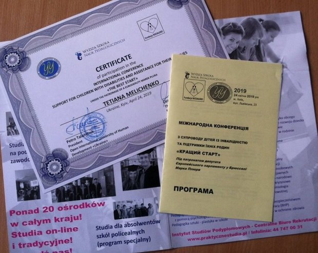 April 24, 2019, the Deputy Director of the Zhytomyr Institute on scientific and methodological work, Candidate of Economic Sciences, Associate Professor, Professor of the Department of Management and Administration Anna Tsiganenko and Deputy Director for Educational and Educational Work of the College of the IAUP, Senior Lecturer of the Department of Psychology, Tetiana Dmytrivna Melichenko took part in the First international conference on supporting children with disabilities and their families "Best Start" under the patronage of the Member of the European Parliament, Mark Plory, on the basis of Open International University of Human Development "Ukraine" in Kiev.
