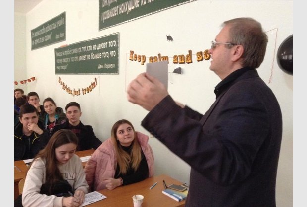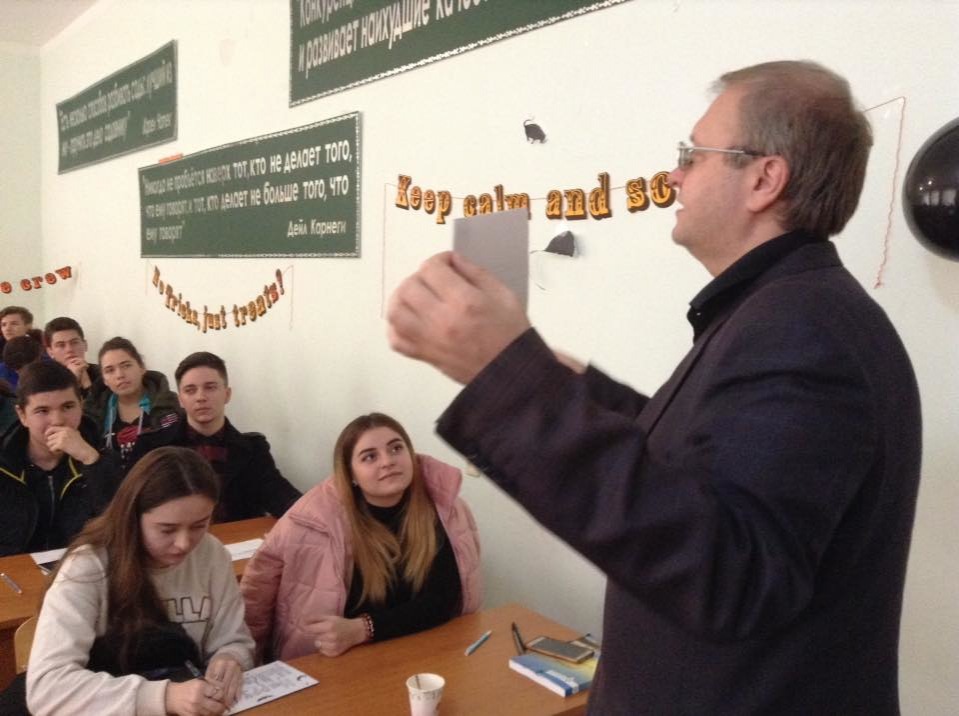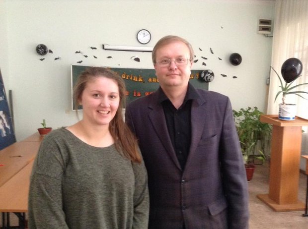 Danubian branch students met with Peace Corps volunteer Jennifer Sutton from America, who was invited by English lecturer Mykola Viktorovych Kapliyenko.