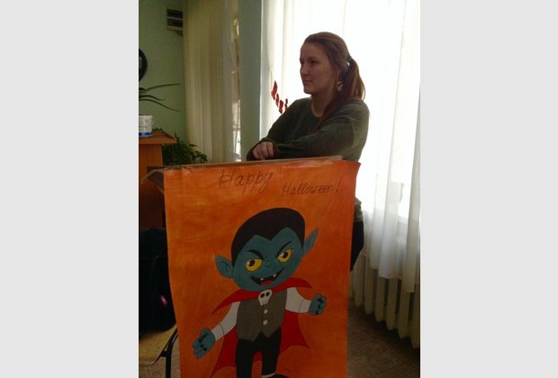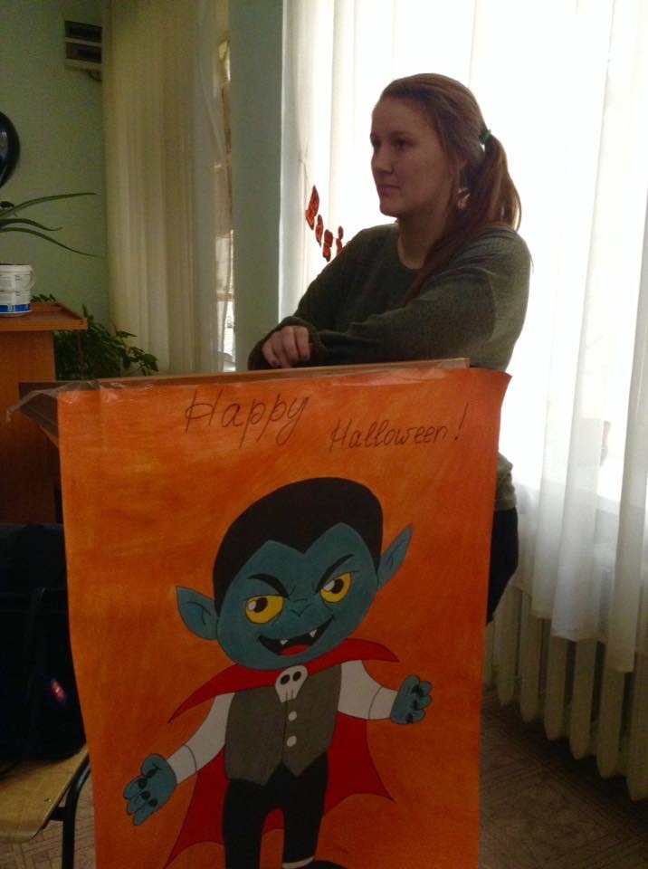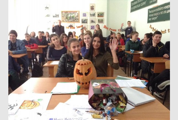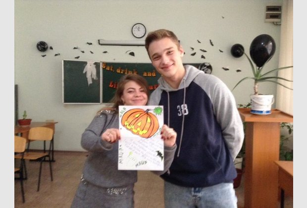 The meeting was held in a warm atmosphere, students were able to communicate with a native speaker, and to test their knowledge, showing them in the form of greetings to Jennifer with Halloween.