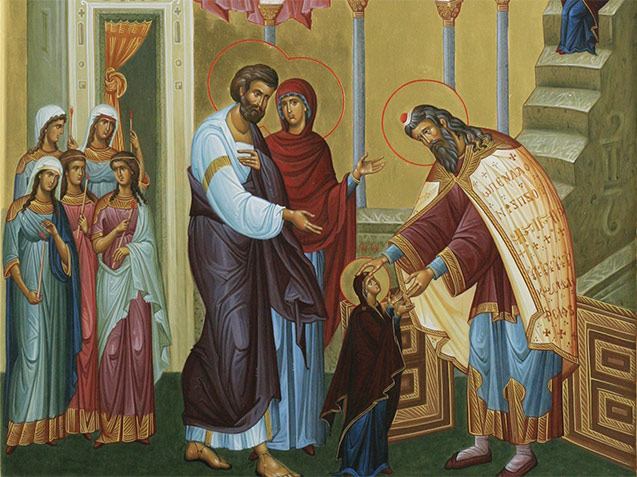 «Храм освячений, храм, який має вмістити Сина Божого, Храм Божий, храм і палата, і живе небо, престол святий, непорочна голубка, ківот святий, золота кадильниця, свічник, трапеза, Невіста Бога Всецаря», – цими словами богослужбових текстів Православна Церква звеличує Богородицю