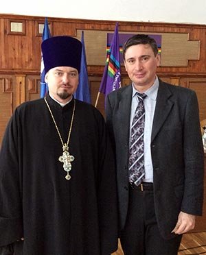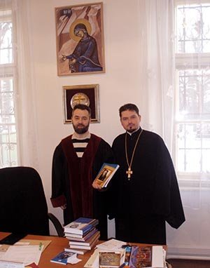Духівник Фонду пам’яті Блаженнішого Митрополита Володимира, митрополит Переяслав-Хмельницький і Вишневський Олександр (Драбинко) та протоієрей Діонісій Мартишин, завідувач кафедри українознавства, православ’я та теології МАУП |