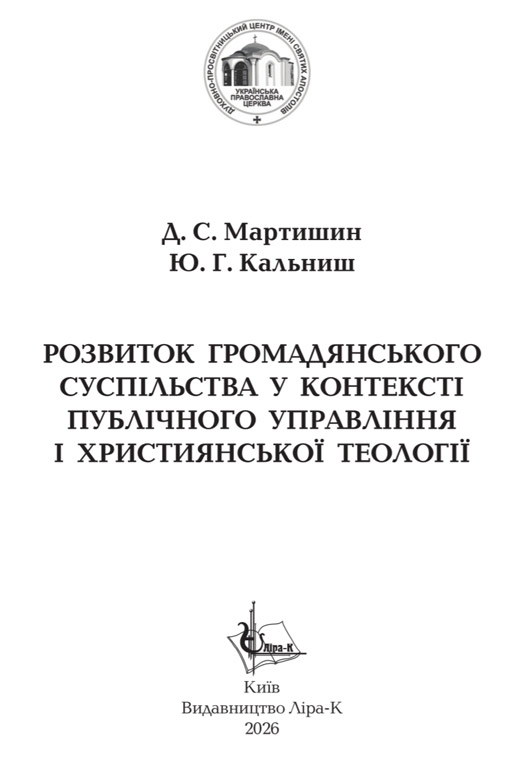У свою чергу, зважаючи на глобальні виклики сьогодення, і християнська церква (православ’я, католицизм, протестантизм) потребує модернізації своєї теологічної думки в публічному управлінні. Важливо сформулювати для християнських церков такі теологічні парадигми місійного свідчення, моделі соціального служіння, соціальні концепції розвитку релігійних громад і суспільства, які не окремо від держави, а разом з нею, не забуваючи про власну християнську віру, мораль, релігійну ідентичність, унікальність і неповторність, забезпечать входження в глобальне співтовариство. Важливість застосування християнських духовних цінностей в публічному управлінні як індикатора інституційної культурно-історичної зрілості українського народу, який керується в публічному управлінні власною духовною християнською спадщиною, привертає увагу багатьох науковців. Отже, розуміння основних сутнісних понять християнської теології в публічному просторі є ключовим для оцінки ролі та значення релігії в житті людини і суспільства, а також визначення шляхів розвитку священної місії християнства в умовах викликів сьогодення. Так, доцільно звернути увагу на нову книгу «Розвиток громадянського суспільства у контексті публічного управління і християнської теології», яка вийшла друком у відомому київському Видавництві Ліра-К. Автори книги — професор Денис Мартишин, доктор наук з державного управління, кандидат наук з богослов’я, завідувач кафедри теології та християнської комунікації Навчально-наукового Інституту психології та соціальних наук (ННІПСН) Міжрегіональної Академії управління персоналом (МАУП) і професор Юрій Кальниш, доктор наук з державного управління, професор кафедри публічного управління та адміністрування Державного університету інформаційно-комунікаційних технологій — здійснили комплексне дослідження теоретичних засад формування громадянського суспільства у контексті діалогу науки публічного управління та християнської теології як стратегічного ресурсу гуманітарної політики та національної безпеки Української держави. Автори наголошують, що розвиток громадянського суспільства має базуватися на засадах релігійного плюралізму, процесів демократії, духовної конкуренції релігійних організацій, принципах соціальної відповідальності, соборності, доброчесності, відкритості, прозорості, стратегічного мислення та партнерської взаємодії церкви, держави і суспільства.