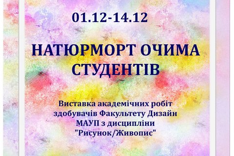 ЗАПРОШУЄМО всіх на відкриття виставки робіт студентів Кафедри дизайну з предмету "Рисунок/Живопис" - "НАТЮРМОРТ ОЧИМА СТУДЕНТІВ"!