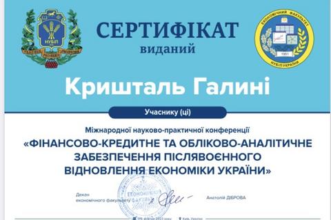 Участь в Міжнародній науково-практичній конференції «Фінансово-кредитне та обліково-аналітичне забезпечення післявоєнного відновлення економіки України»