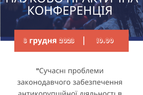 Запрошуємо взяти участь у роботі конференції «СУЧАСНІ ПРОБЛЕМИ ЗАКОНОДАВЧОГО ЗАБЕЗПЕЧЕННЯ АНТИКОРУПЦІЙНОЇ ДІЯЛЬНОСТІ В УКРАЇНІ»