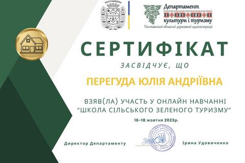 Заступник завідувача кафедри організації туристичної діяльності взяла участь у онлайн навчанні на тему: «Школа сільського зеленого туризму»