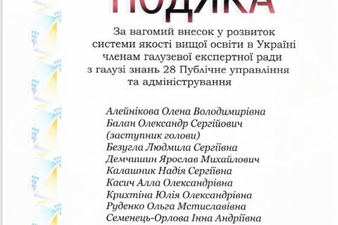 Директор ННІУЕБ І.А.Семенець-Орлова отримала Подяку від НАЗЯВО