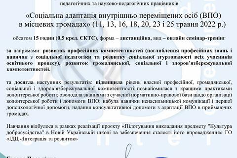 Проектна діяльність у напрямку соціальної адаптації внутрішньо переміщених осіб
