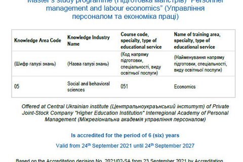Щодо результатів міжнародної акредитації ПрАТ “ВНЗ “МАУП”
