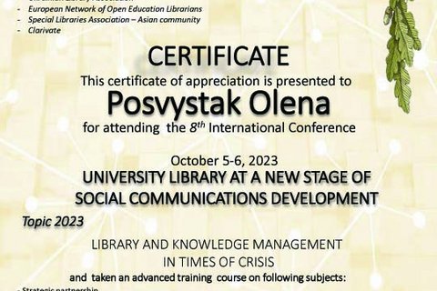 Співробітники Бібліотеки брали часть у VIII Міжнародній конференції «University Library at a New Stage of Social Communications Development»
