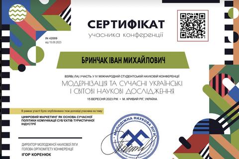 Участь у міжнародній конференції «Модернізація та сучасні українські і світові наукові дослідження»
