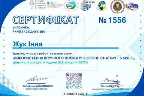 Науковці ННІУЕБ МАУП взяли участь у круглому столі «Використання штучного інтелекту в освіті: ChatGPT і більше», який відбувся 14 червня 2023 року