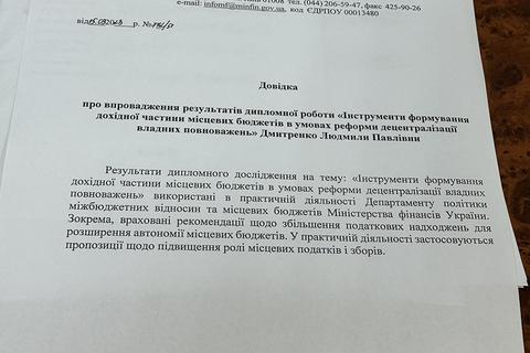 Практичне впровадження результатів наукової роботи здобувачів у Міністерстві фінансів України (ННІУЕБ)