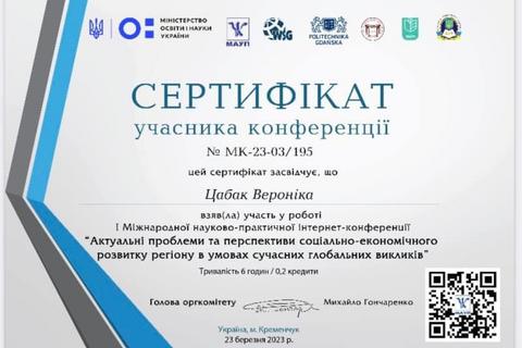 Студентка кафедри менеджменту ННІУЕБ взяла участь у І Міжнародній науково-практичній інтернет-конференції