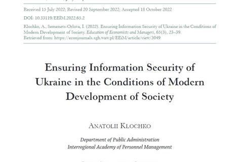 Нові наукові публікації на безпекову тематику (ННІУЕБ)