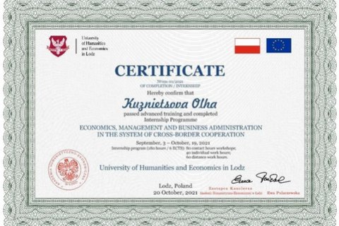 Стажування за темою: «Економіка, менеджмент та бізнес управління у системі трансграничного співробітництва»