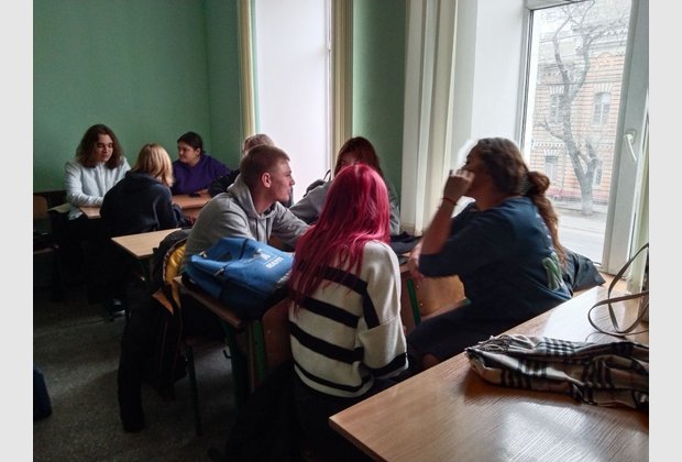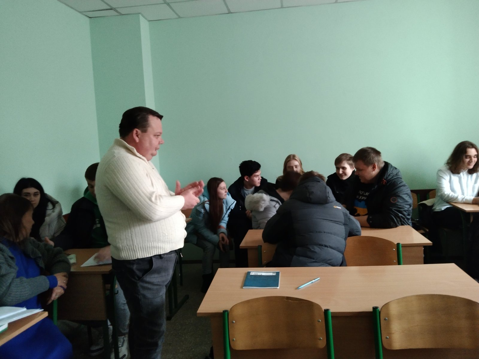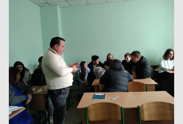 Підготовлена презентація не була можливою через тривалу відсутність світла. Проте це не завадило старшому викладачу кафедри правових дисциплін, психологу служби пробації Роману Асєєву провести цікавий, динамічний тренінг для студентів 1-2 курсів спеціальностей Право та Психологія. Учасники були поділені на 3 групи з конкретними проблемними завданнями, які були обіграні в аудиторії. Розглянувши різні аспекти фізичного, психологічного, сексуального, економічного насильства, учасники усвідомили форми протидії йому і домовились про екскурсію в Приморський райвідділ Одеської філії Центру пробації - у правовий та психологічний підрозділи.