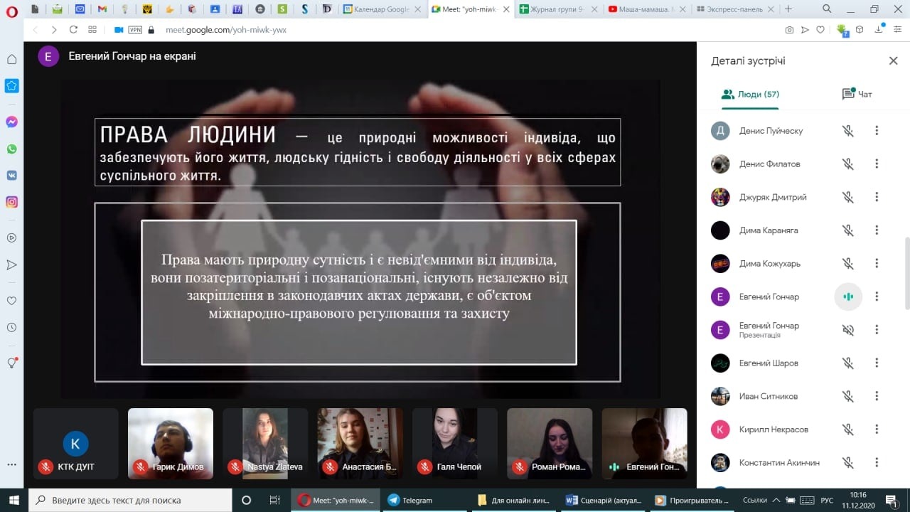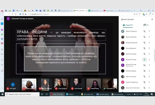 11 грудня 2020 р. була проведена в режимі онлайн-зустріч з курсантами Кілійського транспортного коледжу ДУІТ на тему «Ти - людина! Ти маєш право!»
