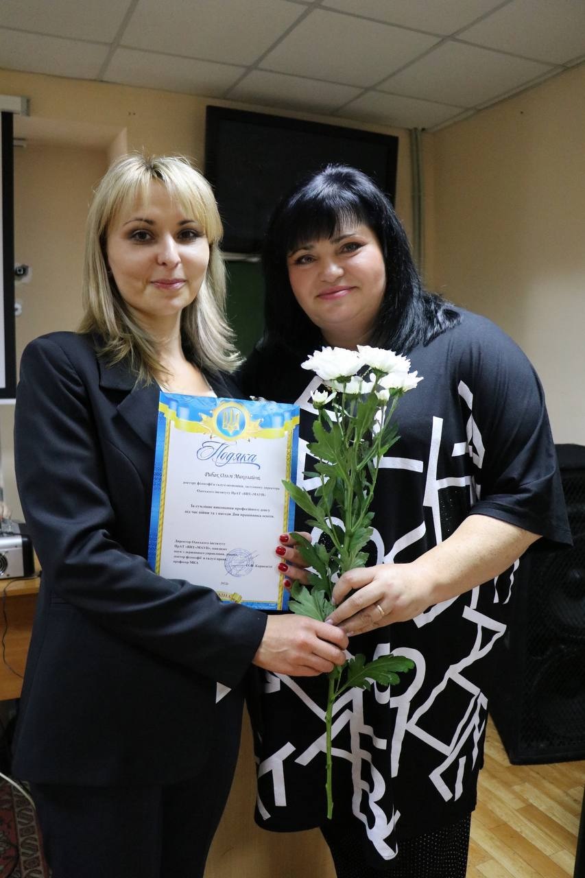 Після змістовної інтенсивної роботи Вченої ради відбулися урочистості до Дня працівника освіти. Директор Одеського інституту МАУП Олена Каракасіді нагородила викладачів і працівників грамотами і подяками та побажала всім скорішої перемоги України, миру, здоров'я, щастя, благополуччя і професійних успіхів.