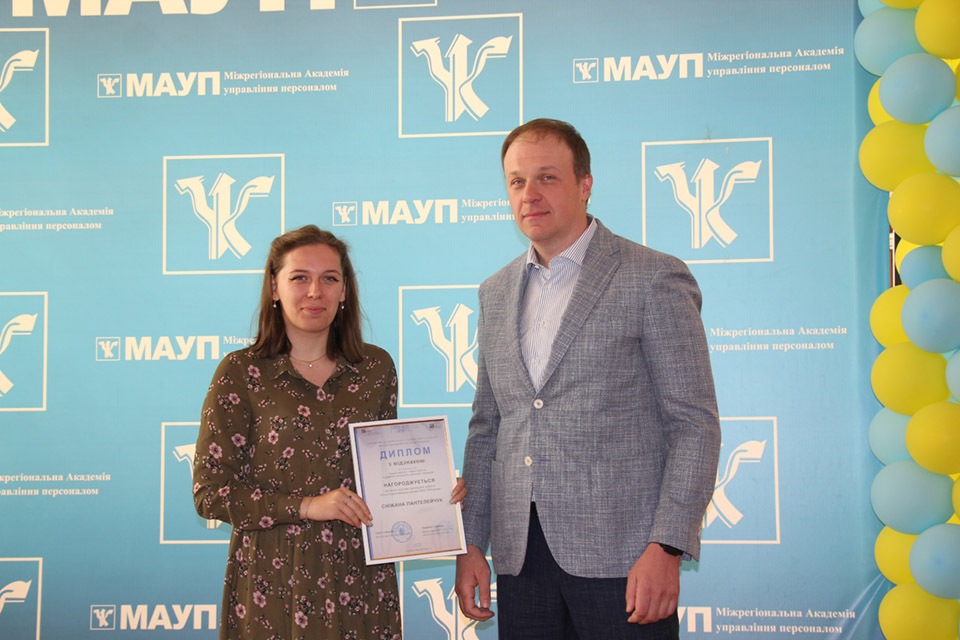 диплом наукового керівника за підготовку студентів-переможців у Сьомому Міжнародному конкурсі наукових і мистецьких робіт імені Володимира Маняка та Лідії Коваленко: Сторожук Ірині Анатоліївні, кандидату історичних наук, доценту кафедри філософії та суспільних дисциплін Навчально-наукового інституту психології та соціальних наук.