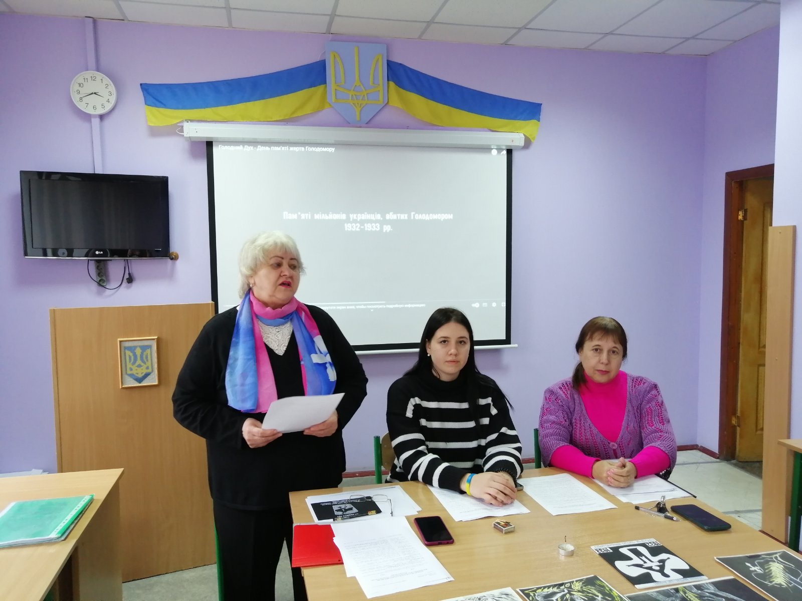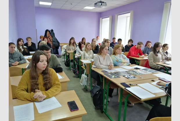 Студенти 1 курсу спеціальней Психологія і Менеджмент Сергій Топал, Крістіна Грицько, Едуард Гармаш, Олег Михальцев, Єлизавета Чебаненко, Юлія Зарічна розповіли про спогади та свідчення жертв Голодомору і вшанування їх пам'яті в Україні та світі.