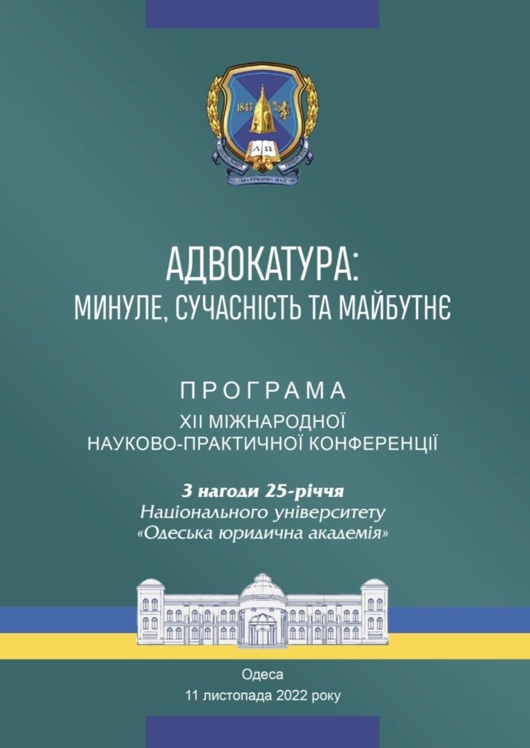 11 листопада 2022 р. к.ю.н., старший викладач кафедри правових дисциплін Одеського інституту МАУП, адвокат Пєров Андрій Петрович взяв участь у ХІІ Міжнародній науково-практичній конференції з нагоди 25-річчя НУ "Одеська юридична академія" на тему: "Адвокатура: минуле, сучасність та майбутнє".