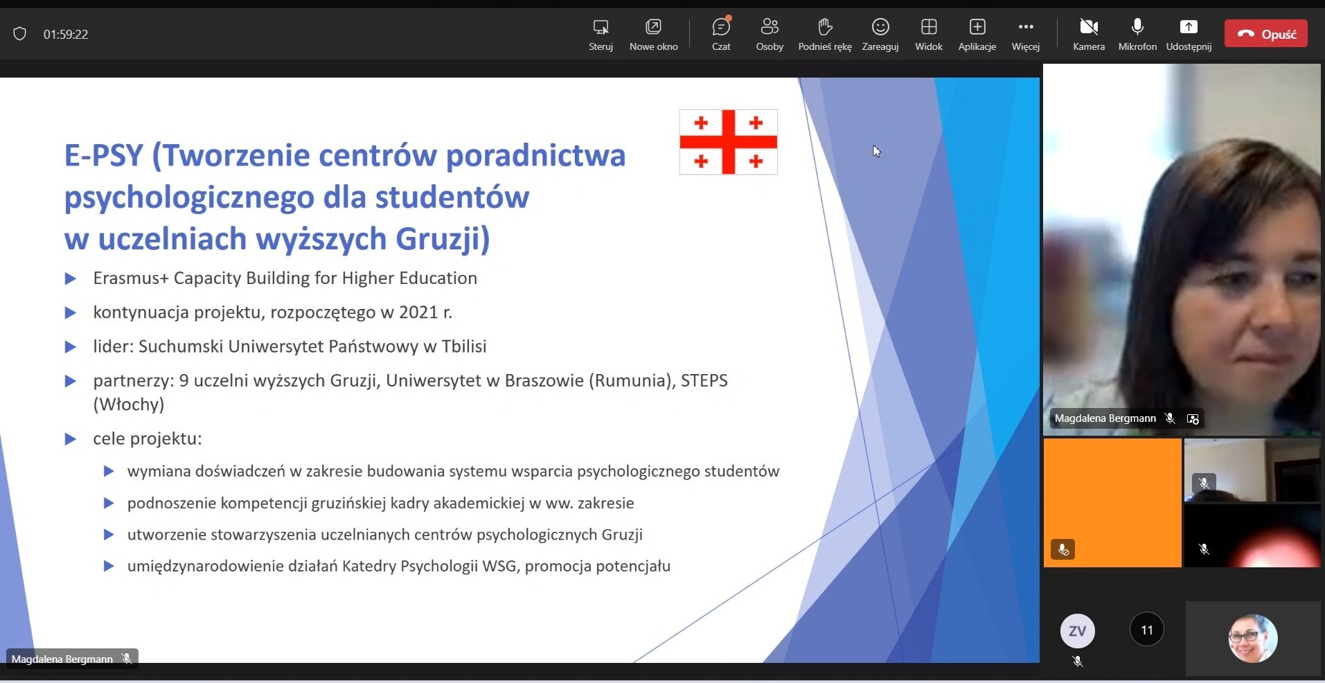 На запрошення адміністрації партнерського навчального закладу - Університету економіки в Бидгощі, директор Центру координації наукових видань та розвитку міжнародного співробітництва Людмила Крива взяла участь в онлайн-семінарі WSG University спільно з пунктом Europe Direct на тему "Академічне підприємництво в ЄС. Гранти ЄС". Програма семінару включала в себе доповідь "Університети підприємництва на прикладі WSG" (професор Світлани Кашуби), доповідь "Гранти і фонди ЄС" (Бартоша Щепаняка, директора пункту Europe Direct в м.Торунь), доповідь "Соціальна економіка " (др. Маґдалени Берґман).