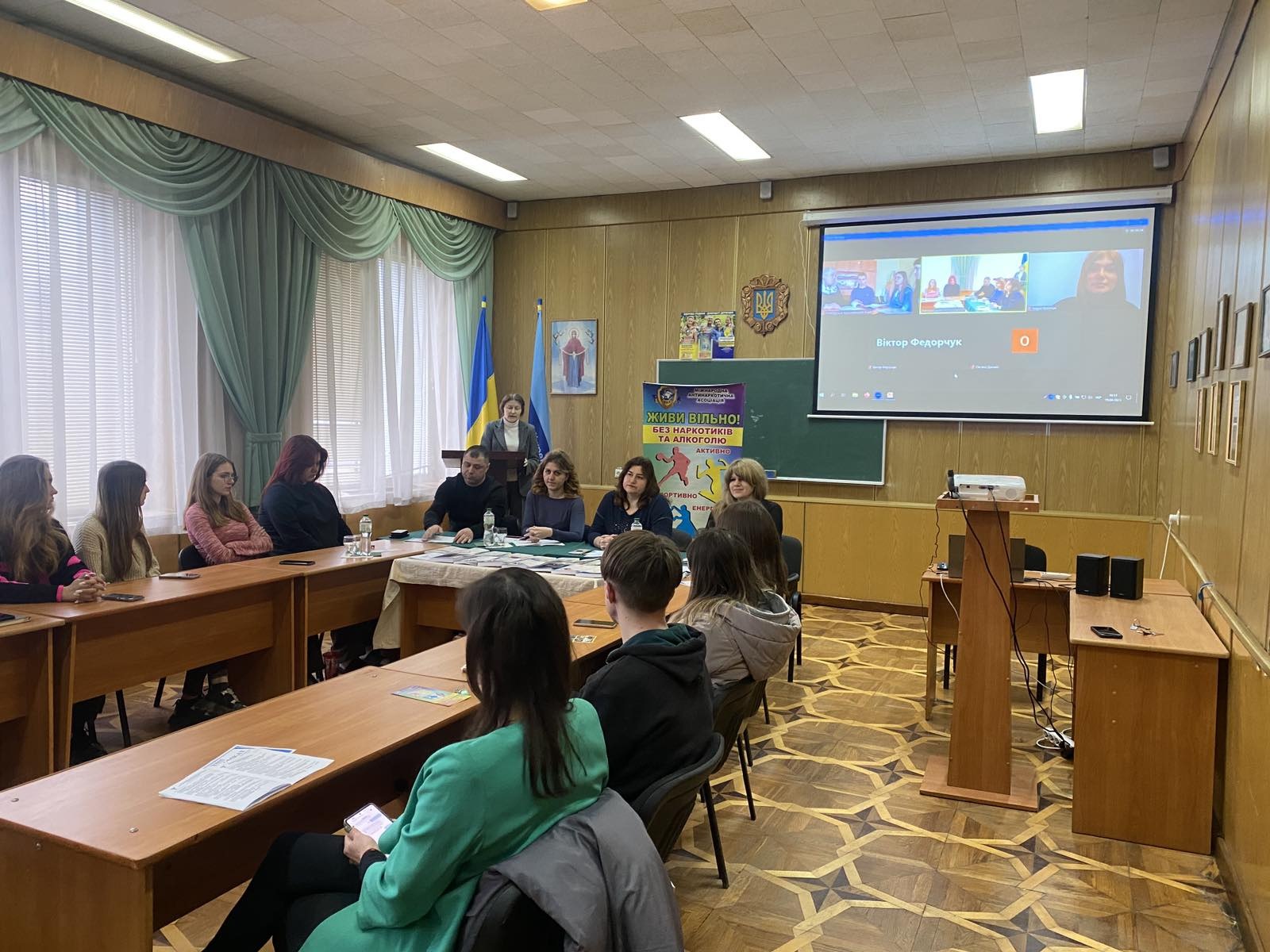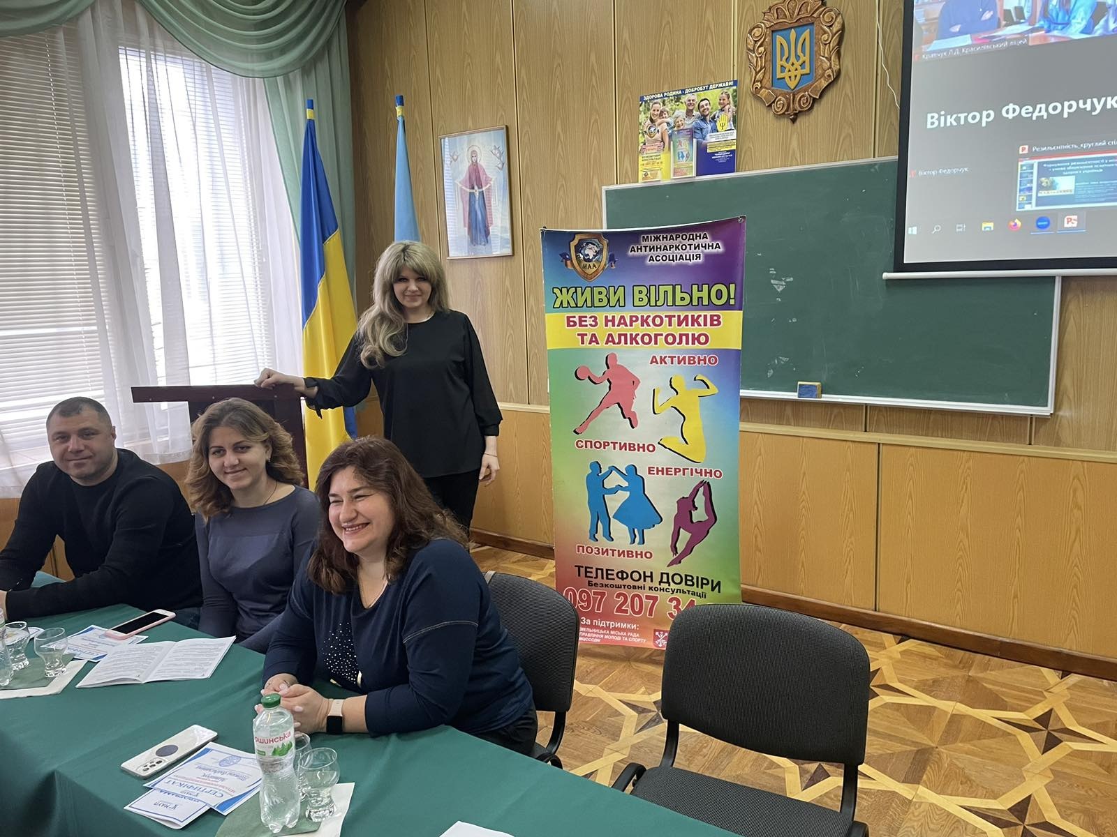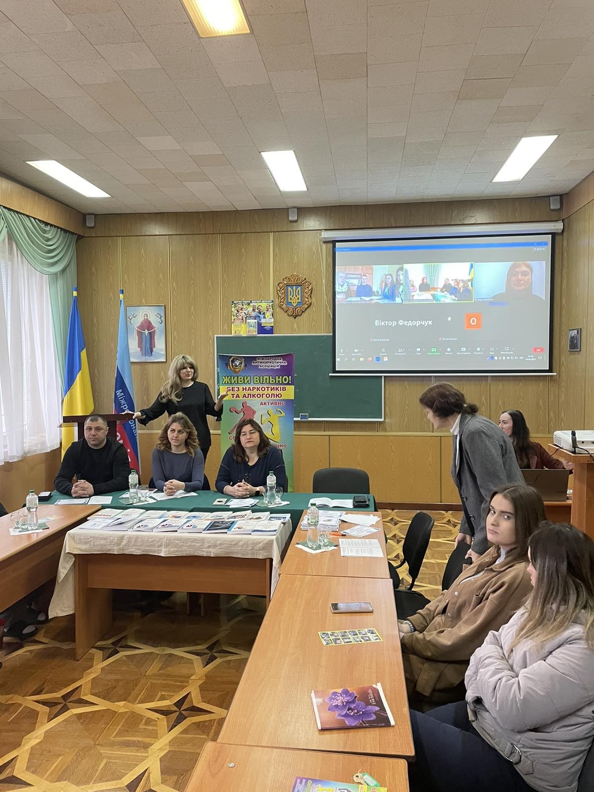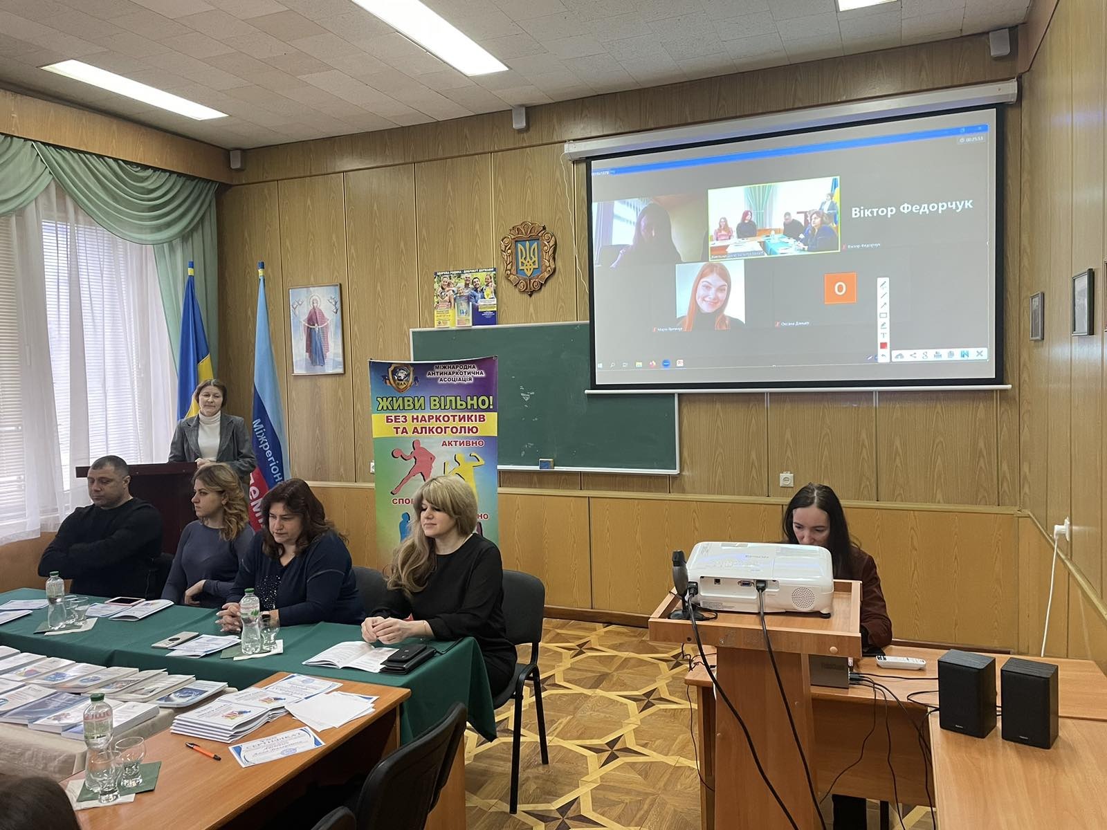 Максим Віталійович Павлов, керівник відділу профілактики Хмельницького Центру здорової молоді розповів про діяльність закладу. Його доповідь продовжила Анастасія Володимирівна Хаблюк, керівник терапевтичного процесу Хмельницького Центру здорової молоді.