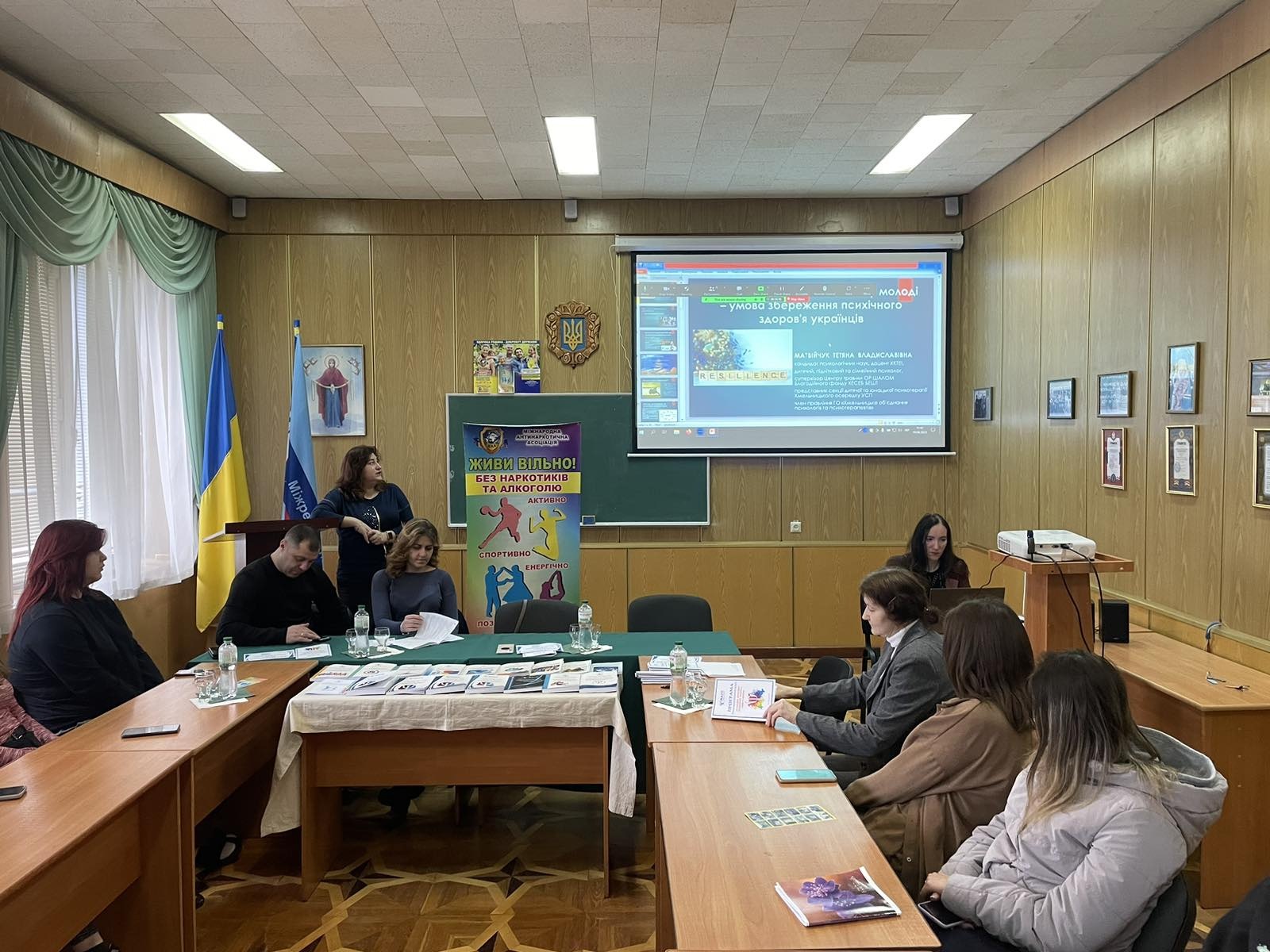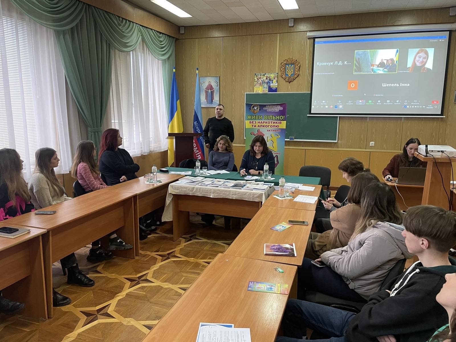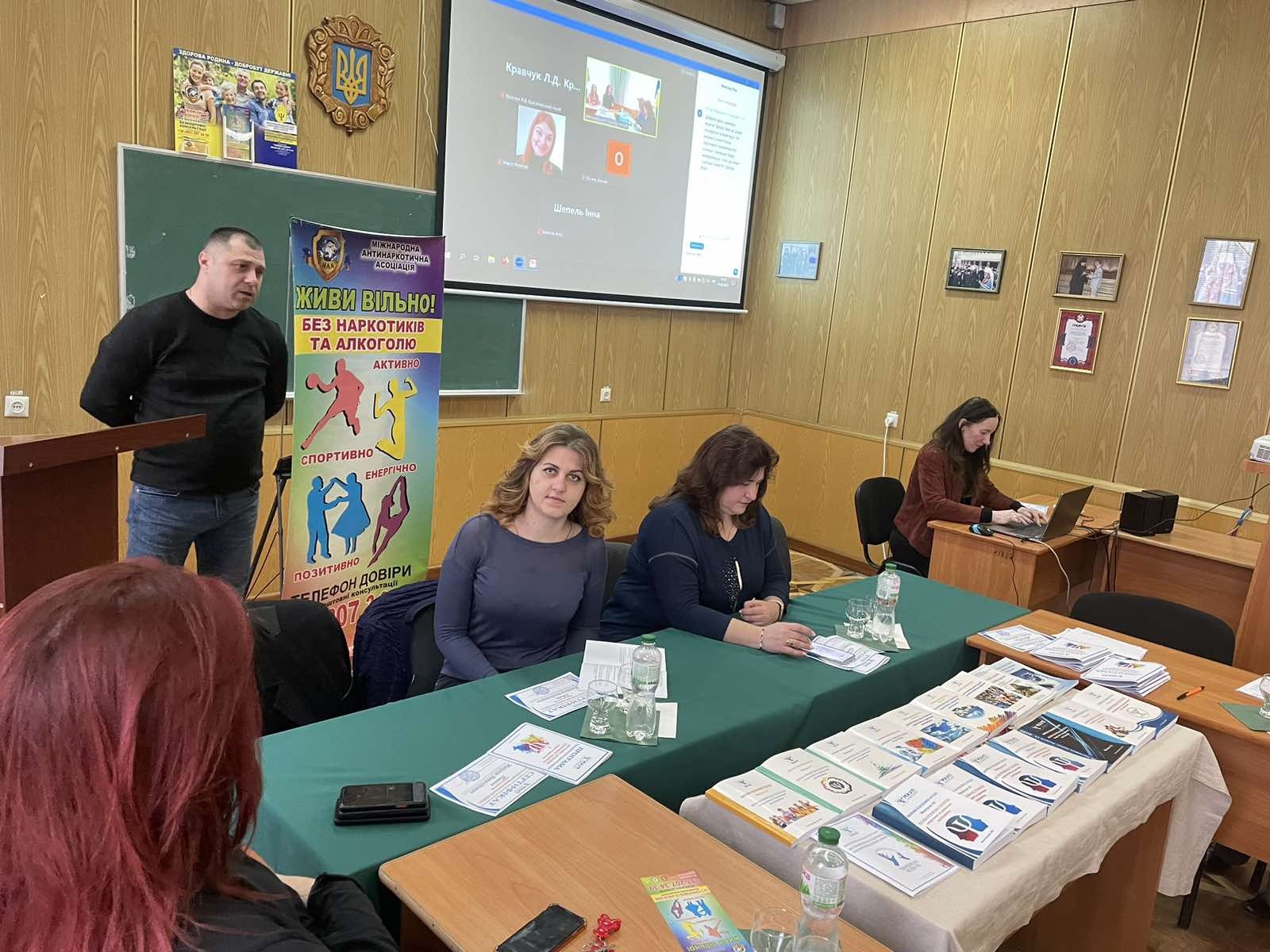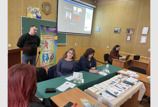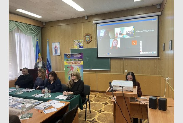 Максим Віталійович Павлов, керівник відділу профілактики Хмельницького Центру здорової молоді розповів про діяльність закладу. Його доповідь продовжила Анастасія Володимирівна Хаблюк, керівник терапевтичного процесу Хмельницького Центру здорової молоді.
