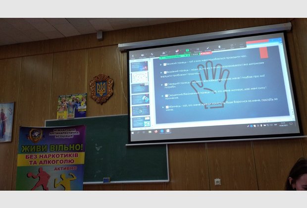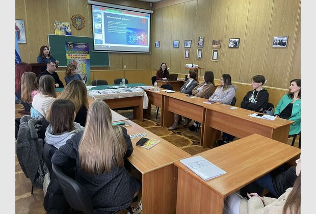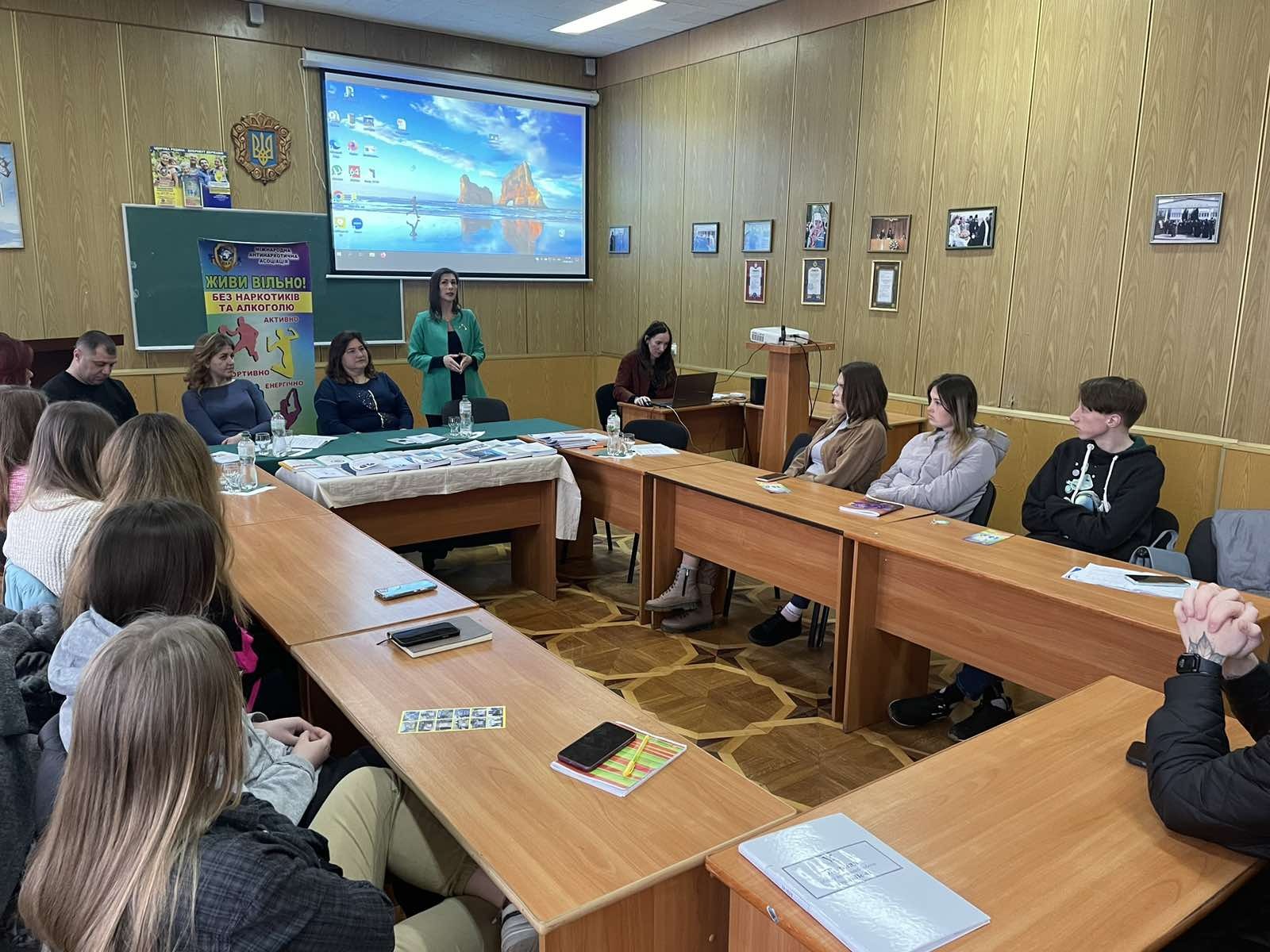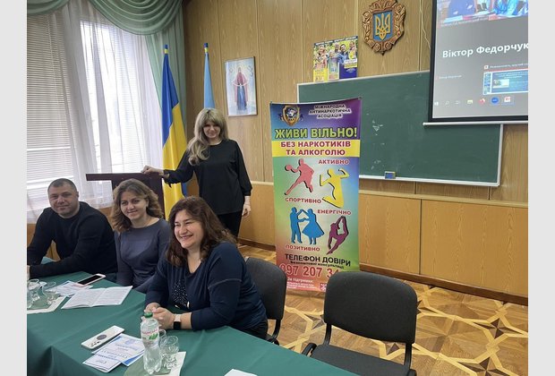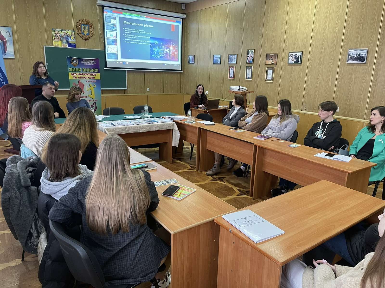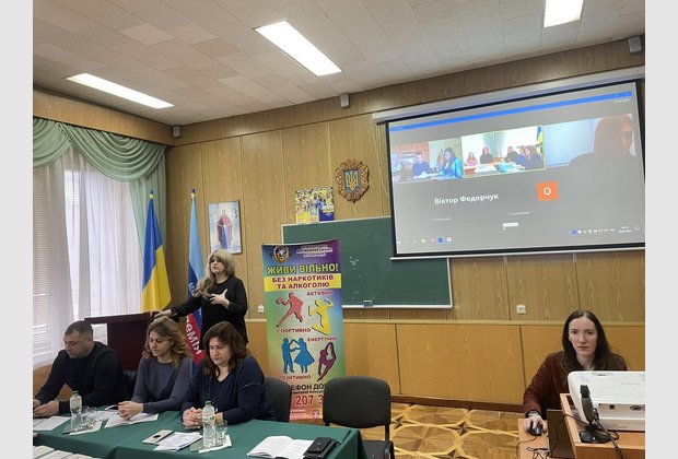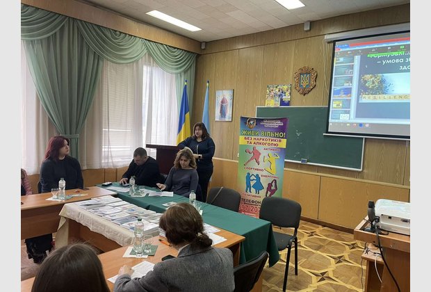 Максим Віталійович Павлов, керівник відділу профілактики Хмельницького Центру здорової молоді розповів про діяльність закладу. Його доповідь продовжила Анастасія Володимирівна Хаблюк, керівник терапевтичного процесу Хмельницького Центру здорової молоді.