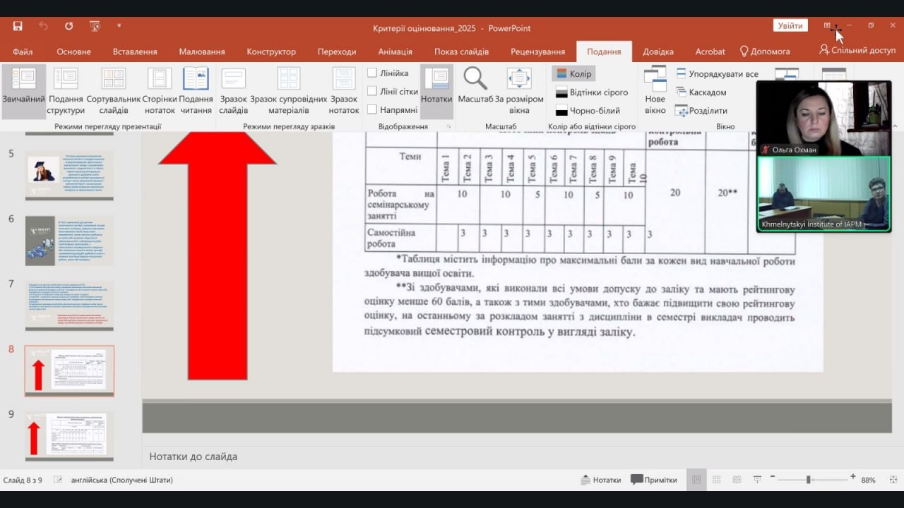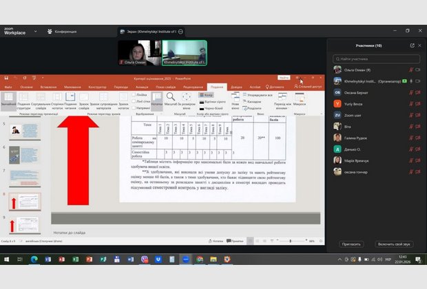 На семінарі проаналізували успішність запровадження оновленої системи оцінювання, визначили сильні та слабкі сторони у реалізації системи оцінювання та напрями роботи у 2 семестрі 2025/26 навчального року.