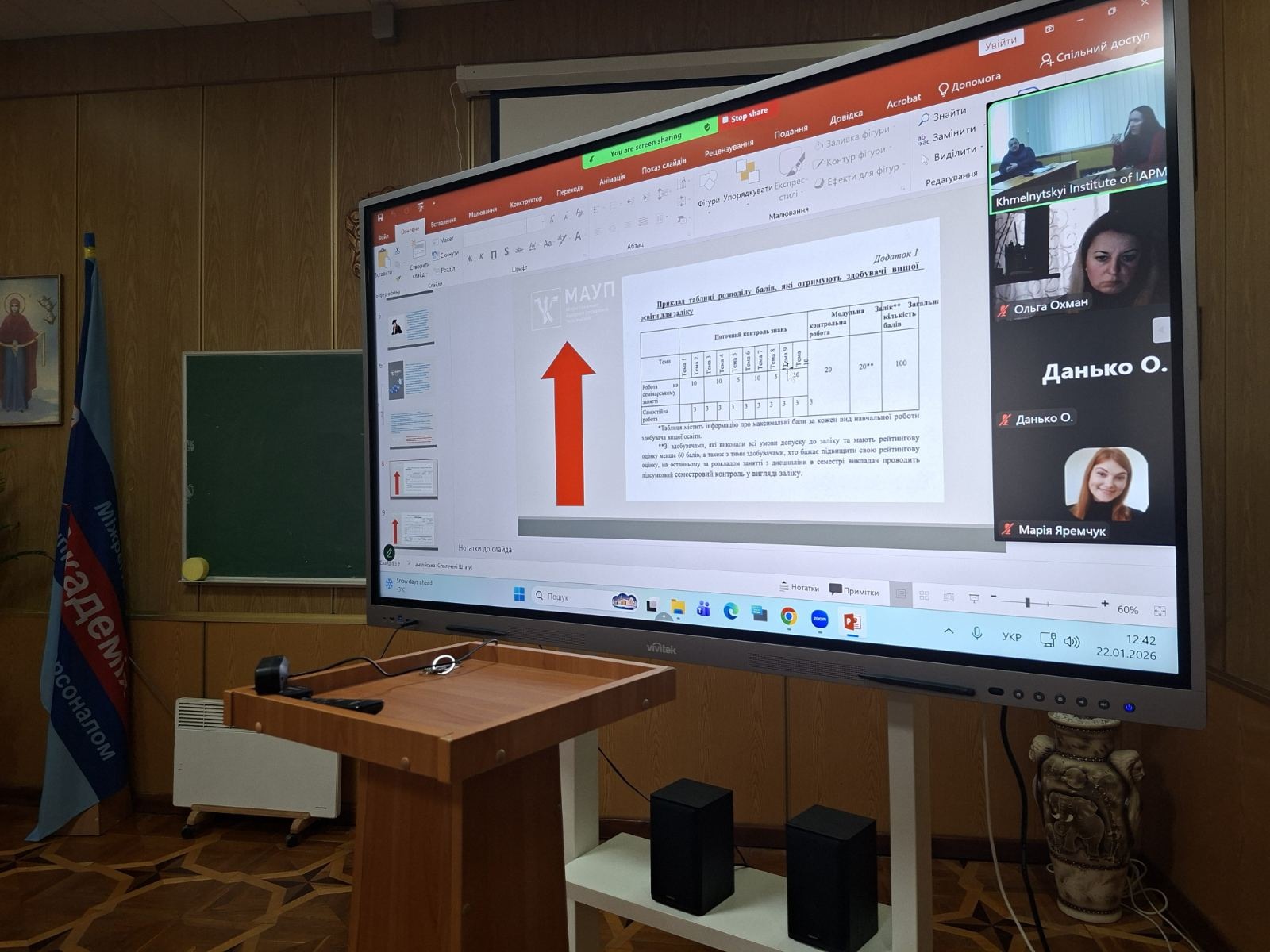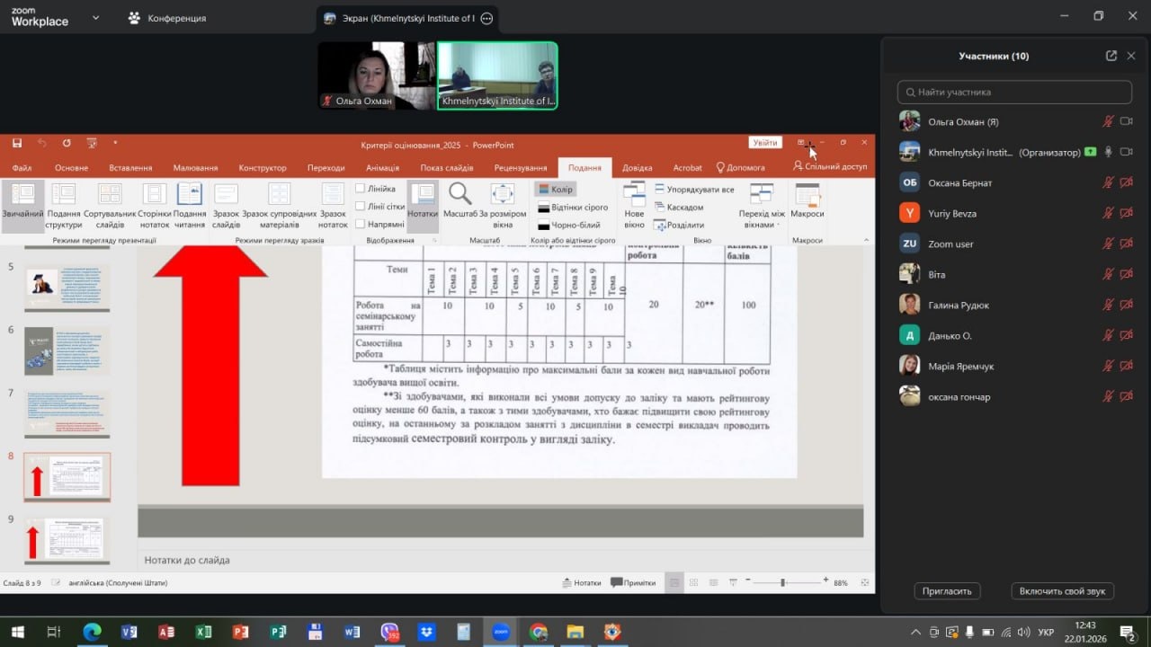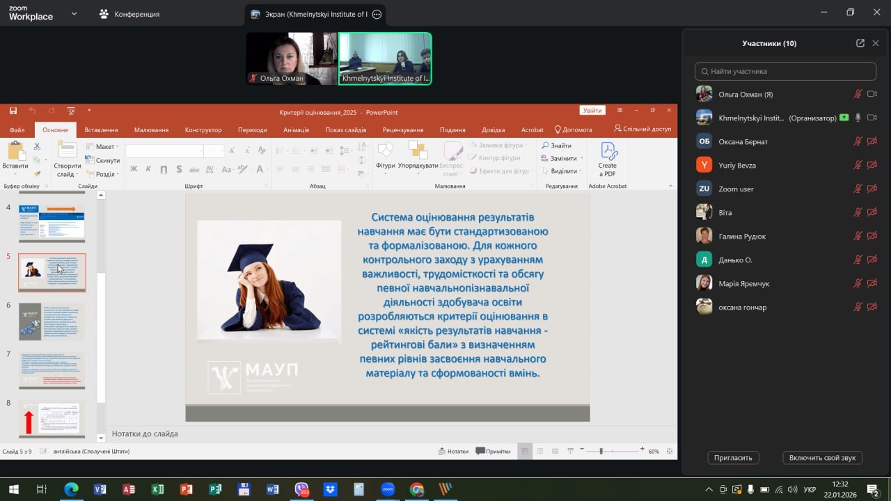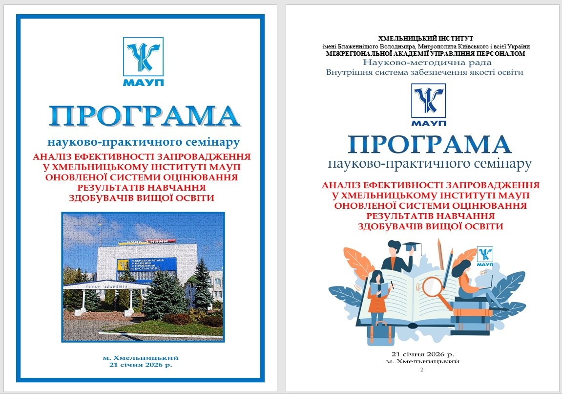 21 січня 2026 року в рамках засідань Науково-методичної ради постійнодіючого науково-практичного семінару «Внутрішня система забезпечення якості освіти» у Хмельницькому інституті МАУП відбувся науково-практичний семінар «Аналіз ефективності запровадження у Хмельницькому інституті МАУП оновленої системи оцінювання результатів навчання здобувачів вищої освіти».